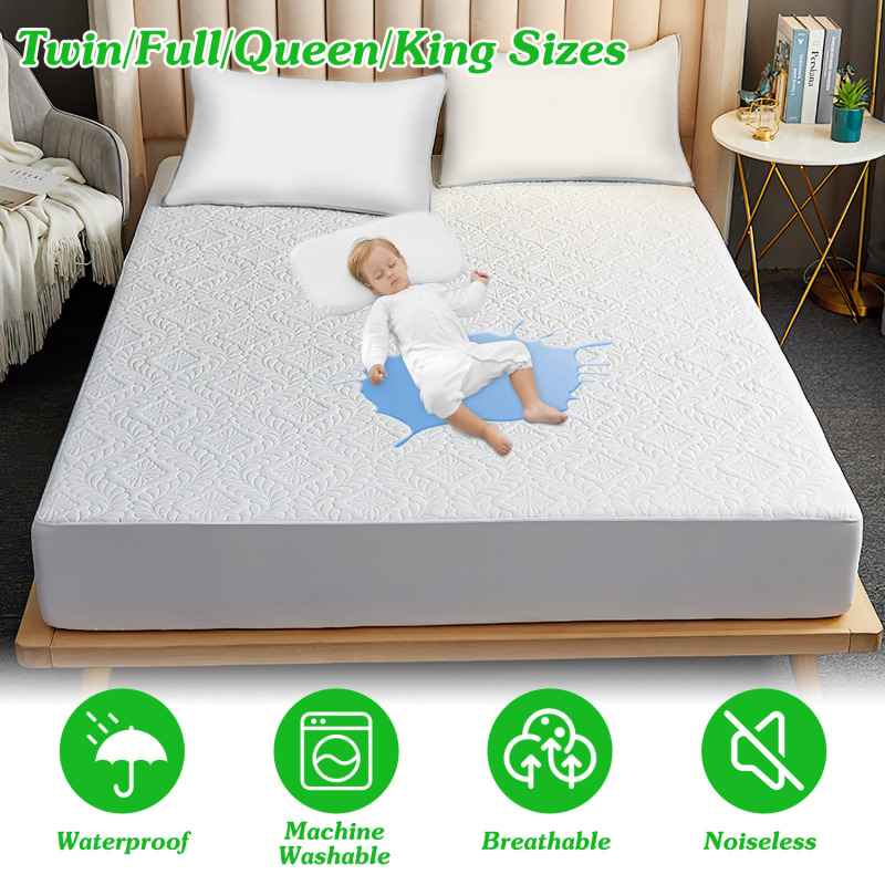 Full Size Waterproof Mattress Protector Breathable Soft Cotton Mattress Pad Cover With Elastic Deep Pocket Up To 11in Noiseless Machine Washable Bedding Mattress Pad