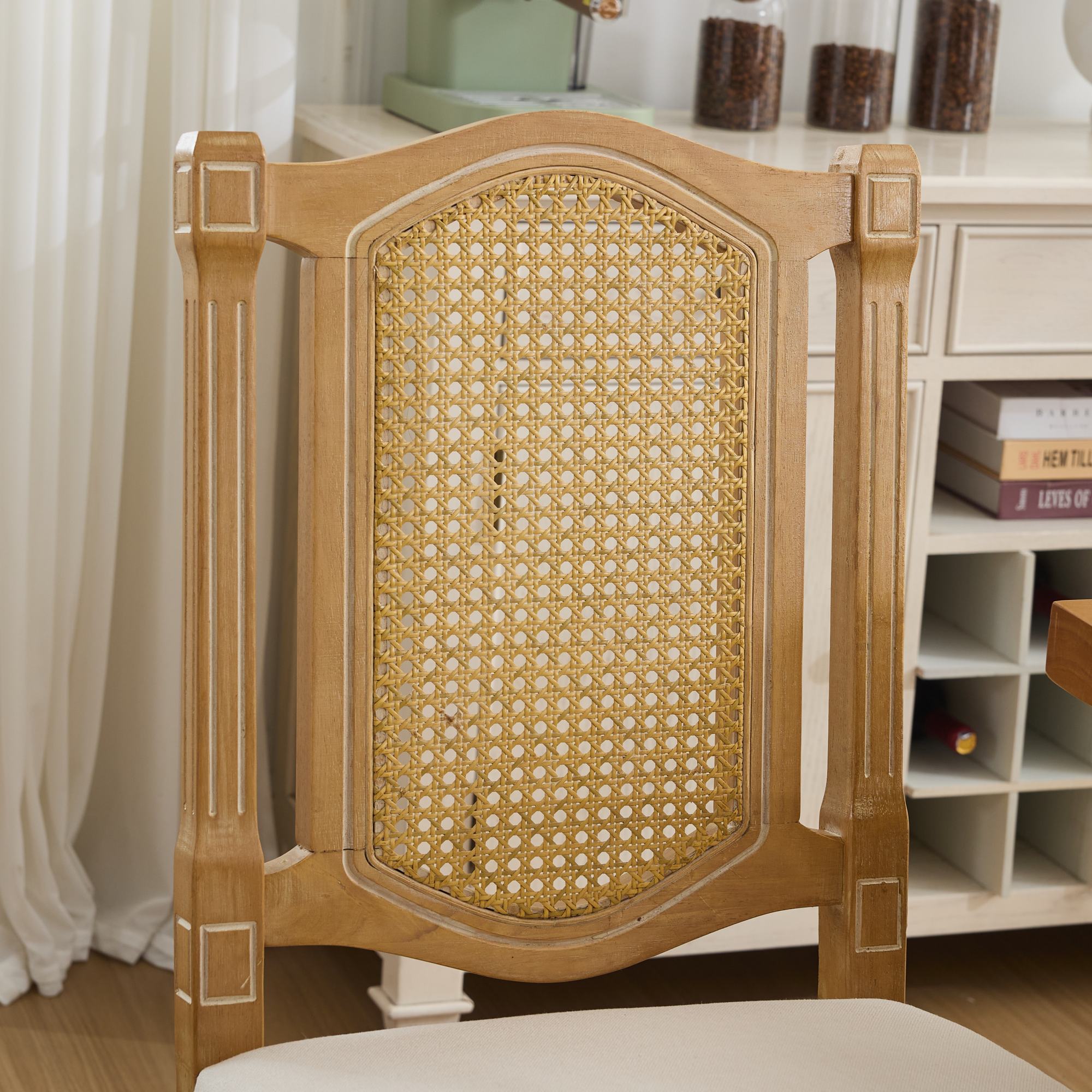 Product Name:Full Solid Wood Rattan-Back Dining Chair, Matte Linen Cushion with High-Resilience Foam & S-Springs, Perfect for Rustic/Natural Style Dining Room, Café with Classic & Durable Design,Beige,SW1874BG