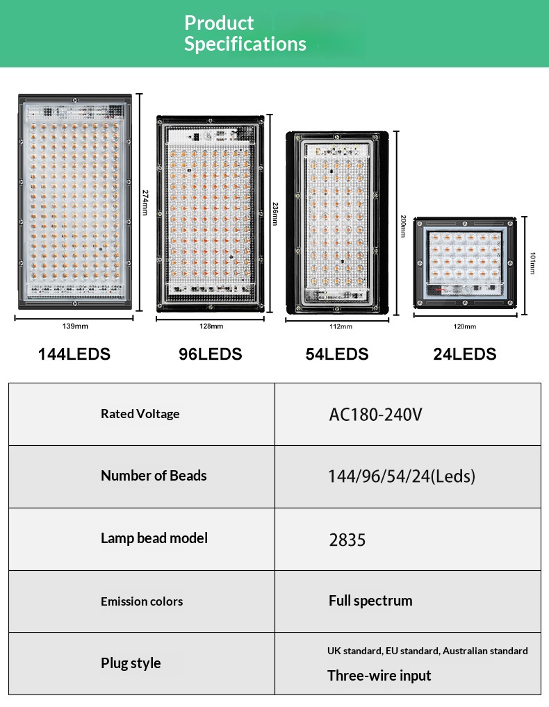 Power: 25W (24 LED beads), 50W (50 LED beads), 100W (96 LED beads), 200W (144 LED beads)