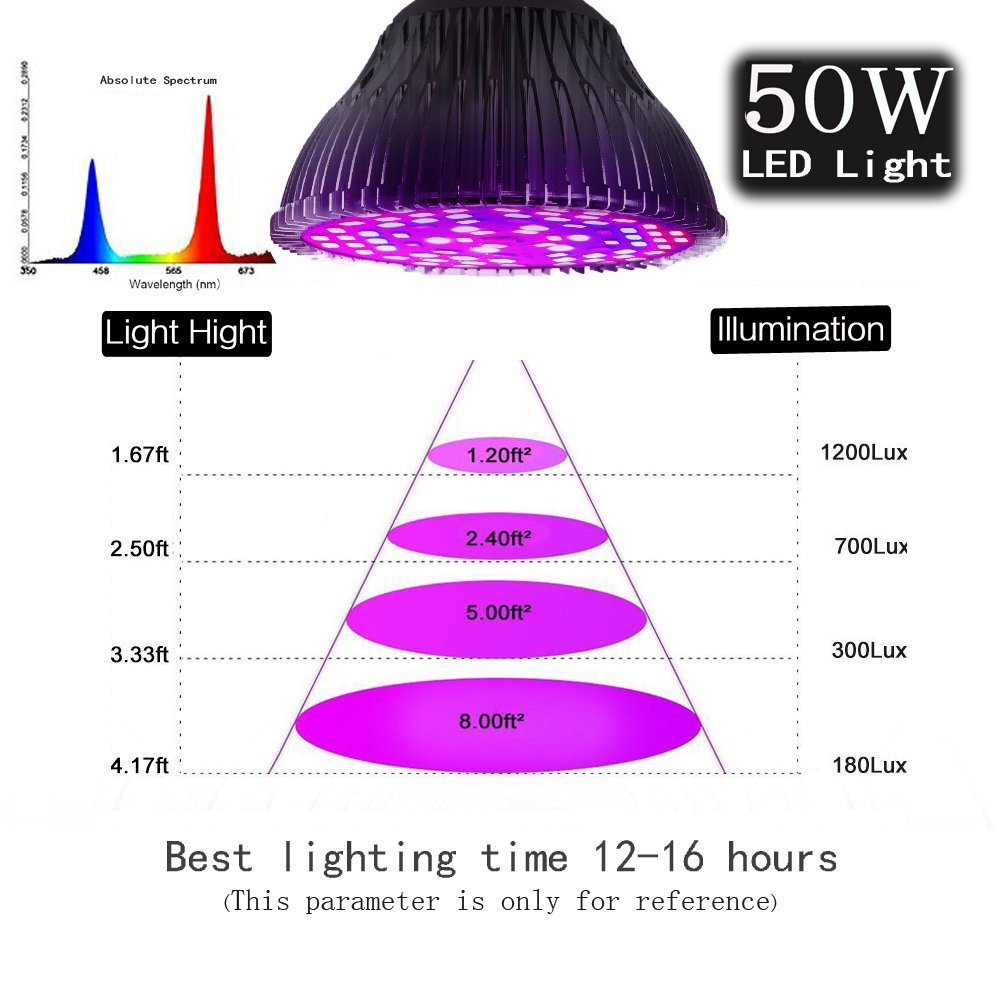 Easy to use, ready to grow immediately: 80W grow light, fits standard E27 socket; it is easy to set up and use; Input voltage: AC85-265V.