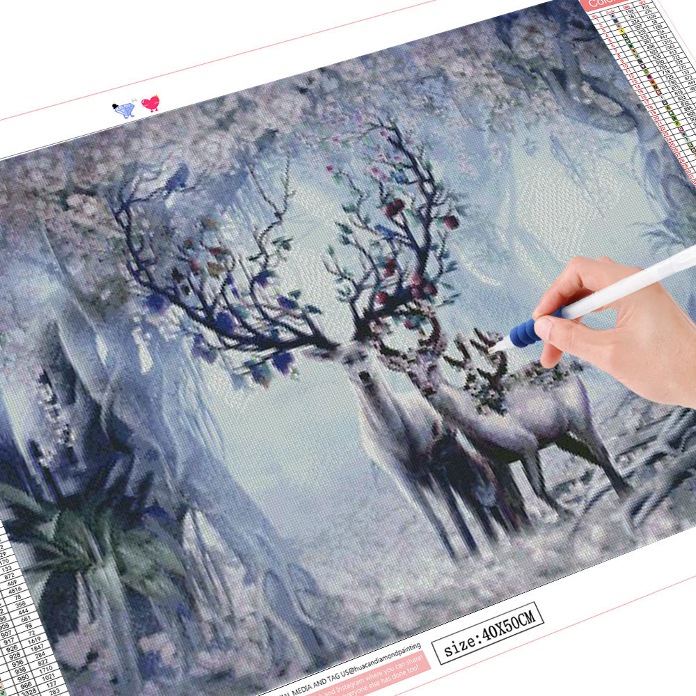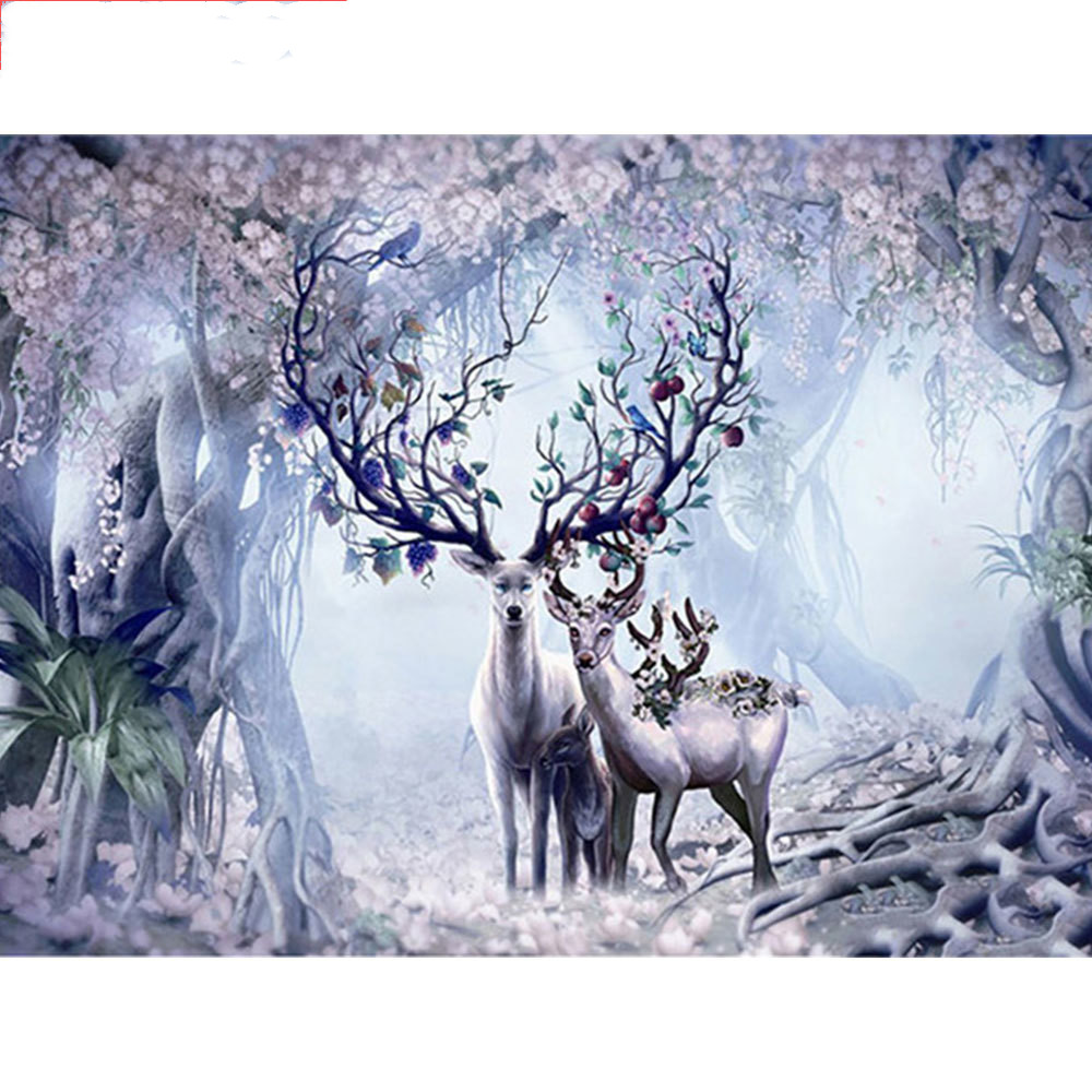 Full Square Round Deer Diamond Painting Animal Mosaic Forest Wall Art