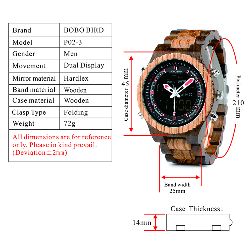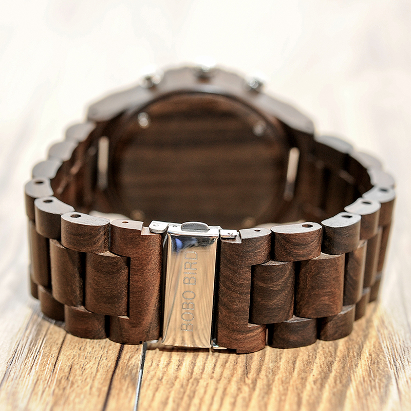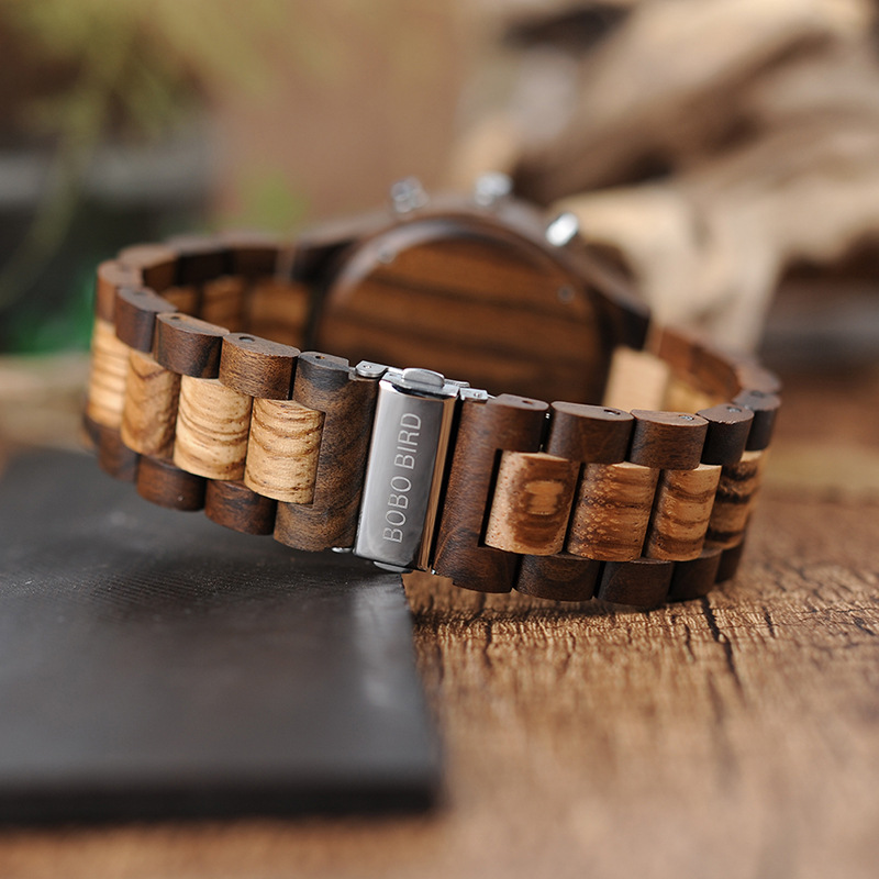 Full Wood Watch Quartz Watch Dual Movement Multi-function LED Watch