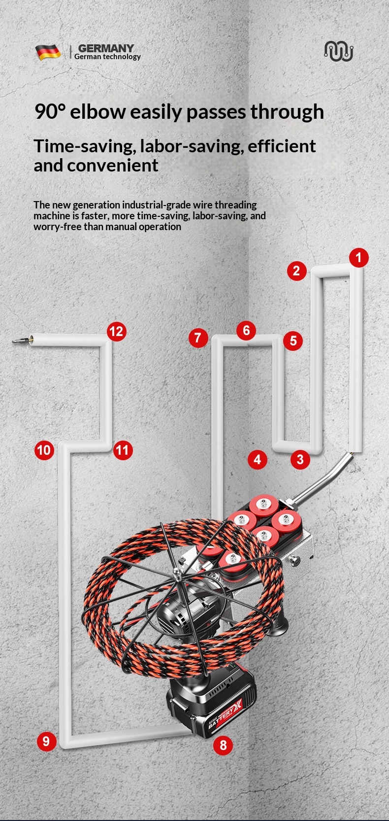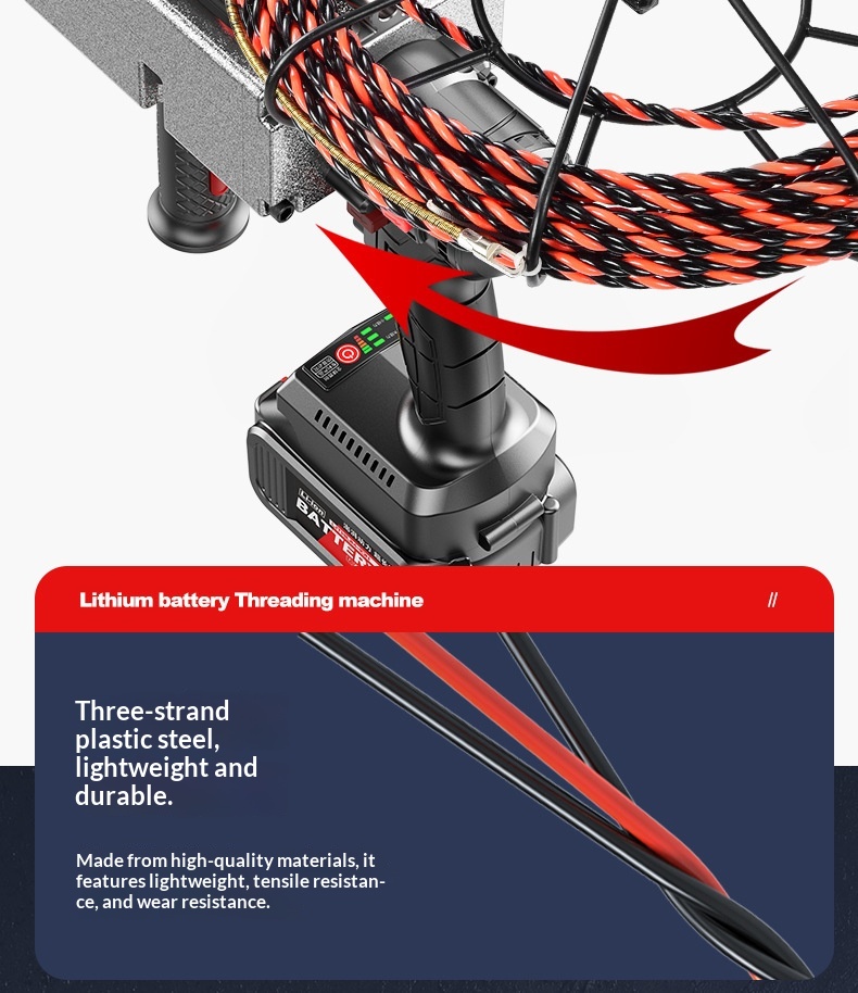 Specifications: Lithium-ion threading machine [10-cell battery], 2 batteries + 1 charger, with a 30-meter lead wire