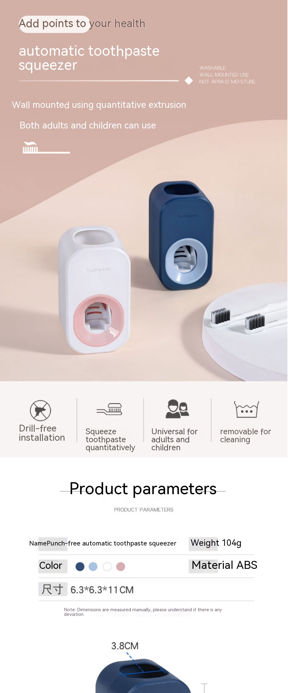 Product information:Function: squeeze toothpaste Color: light blue, pink, dark blue, white Material: ABS