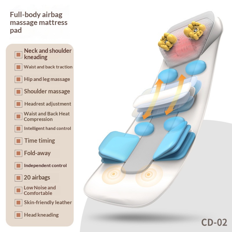 Functions: Timer, handheld wired control, mechanical massage, airbag kneading and clamping