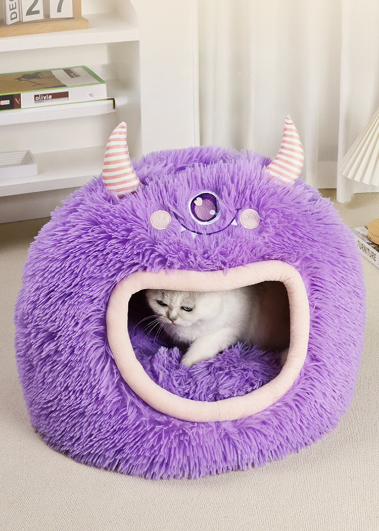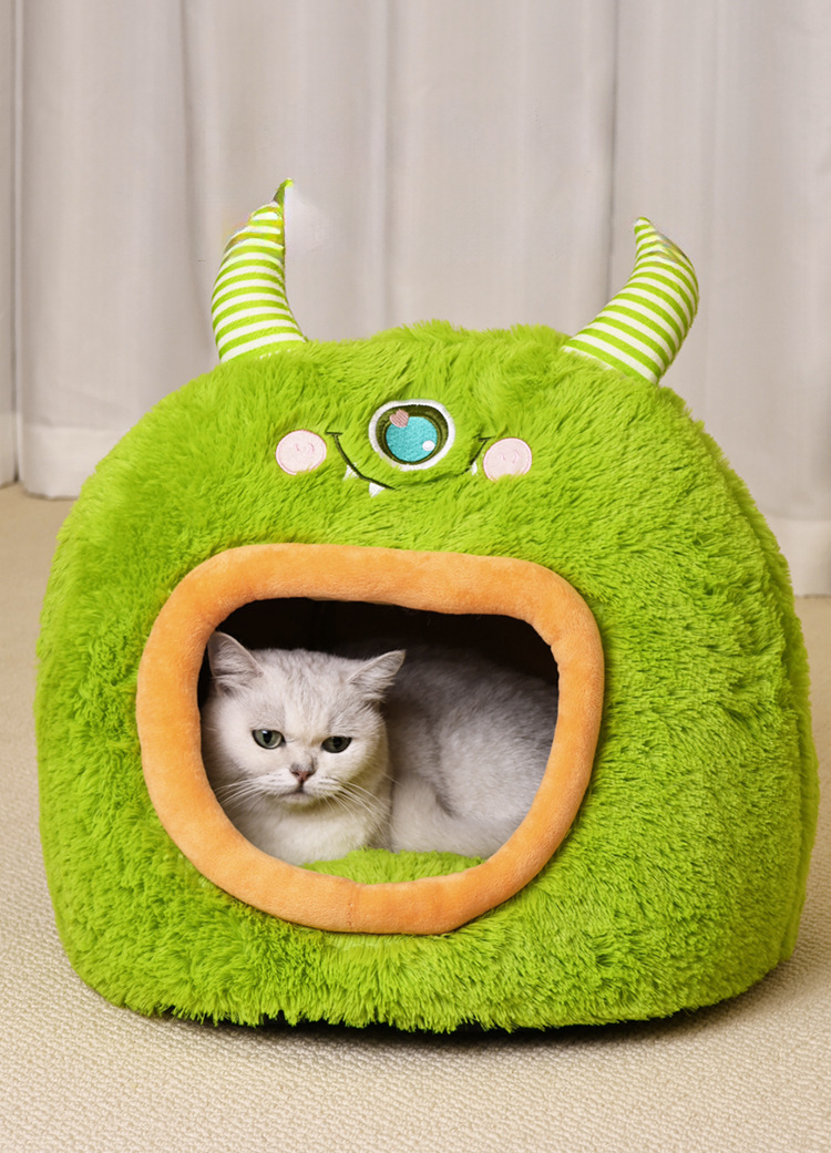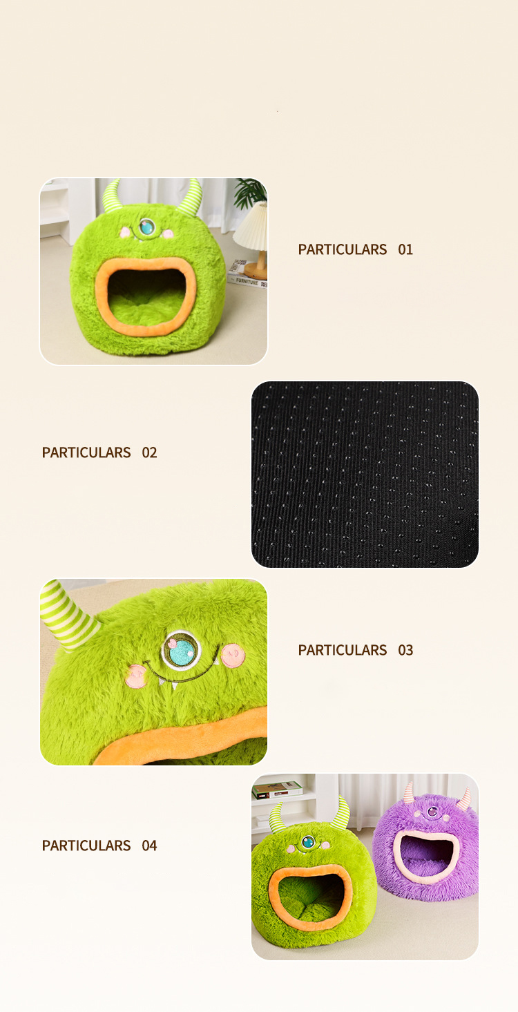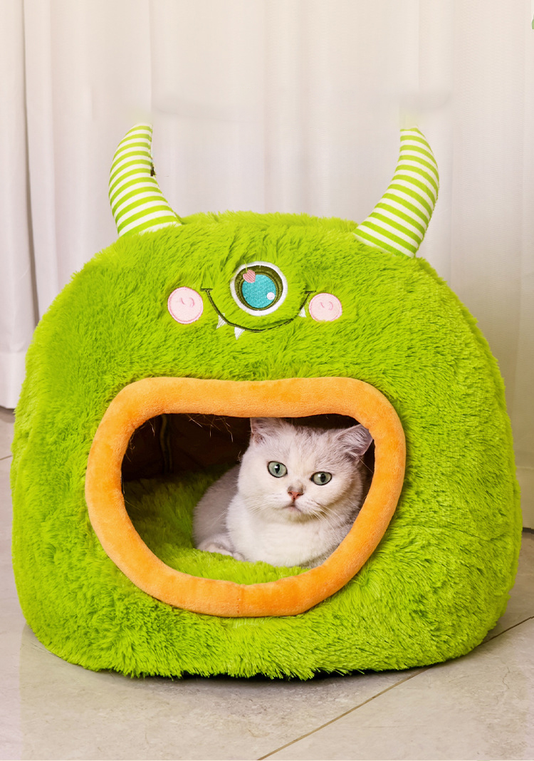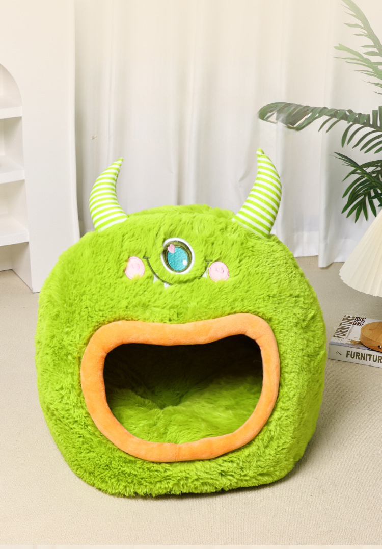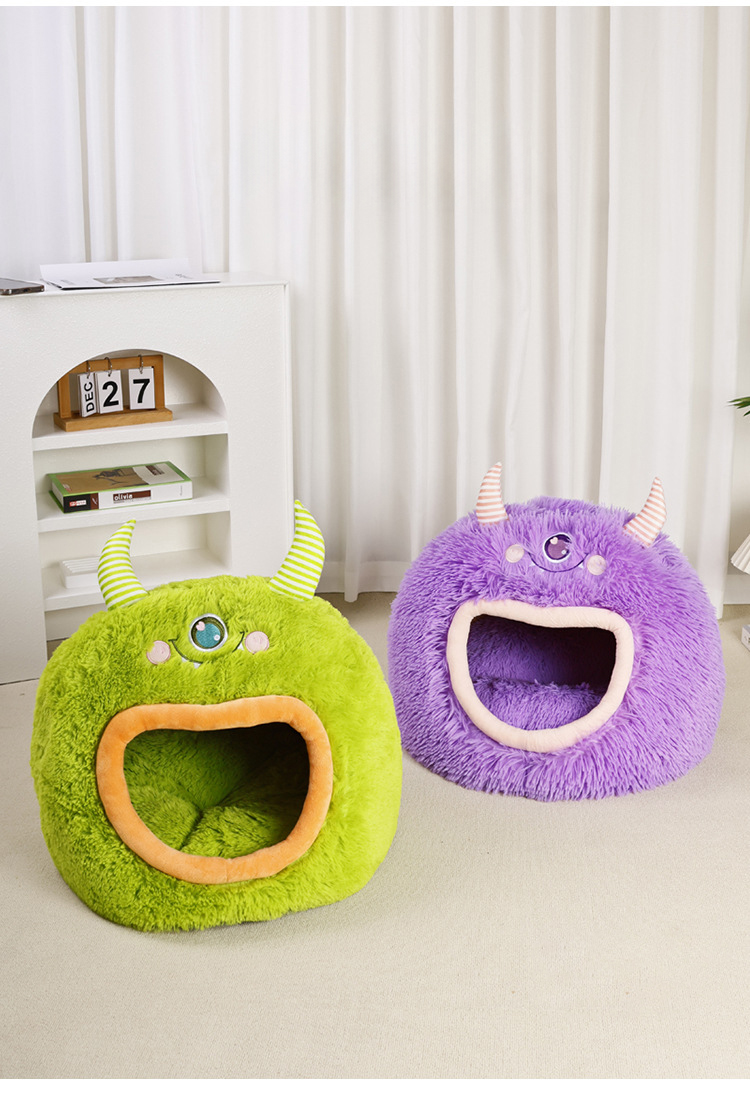 Fully Enclosed Safe And Cozy Cartoon Monster Pet Bed For Dogs And Cats Four Seasons Universal Soft And Warm For Winter Cat House