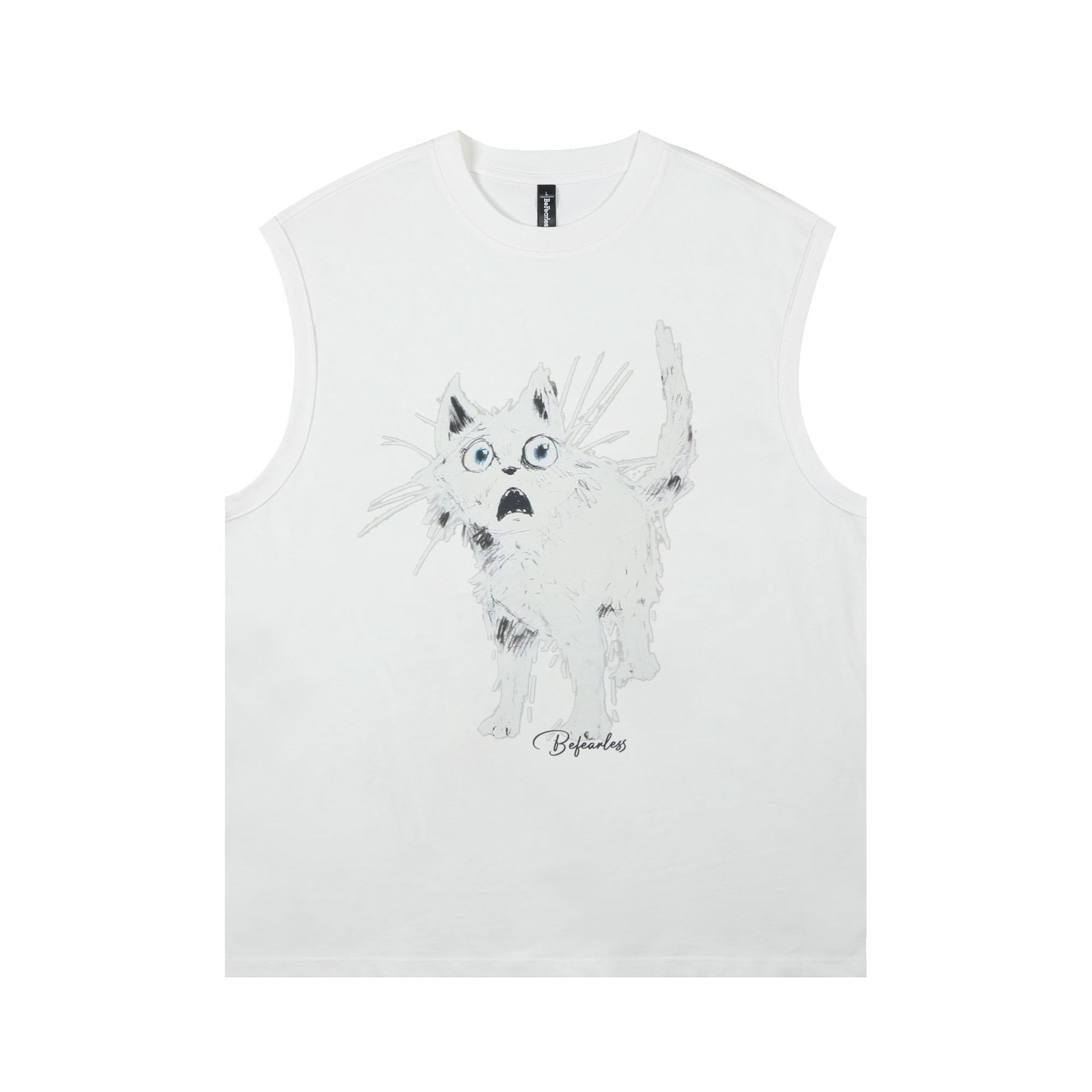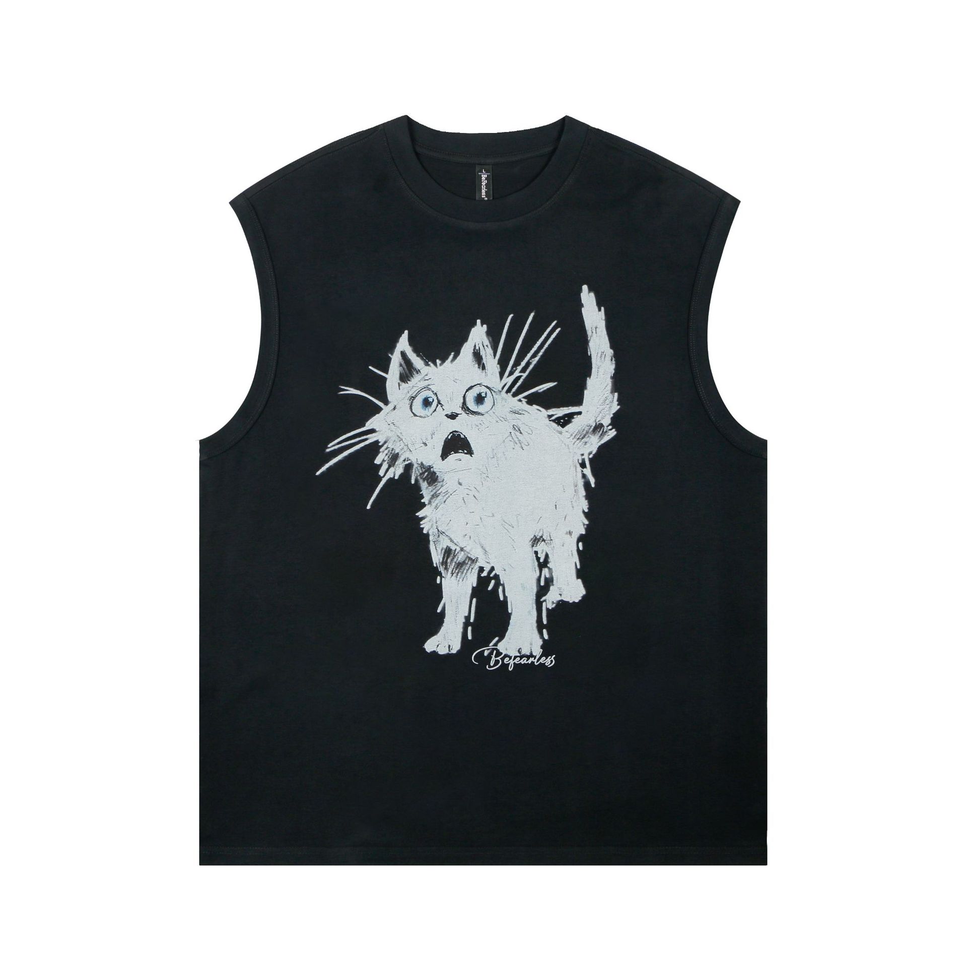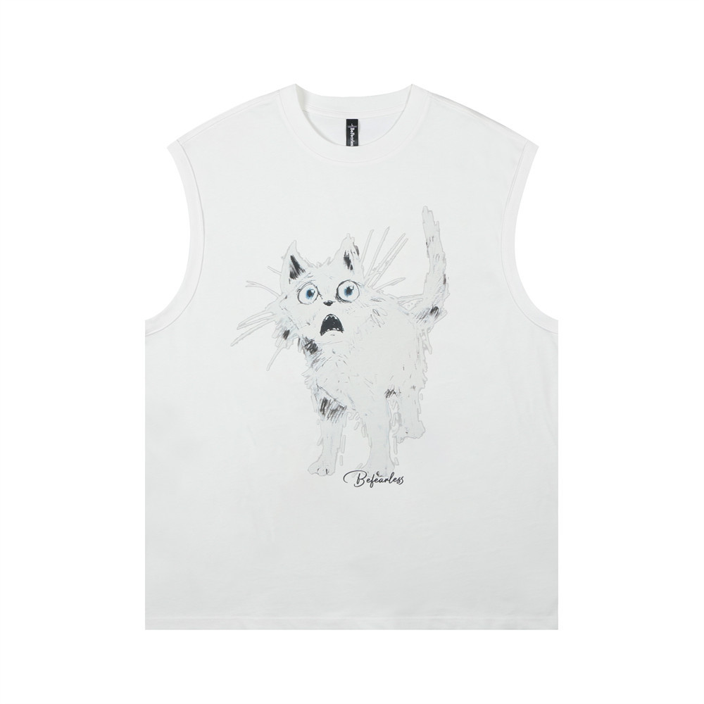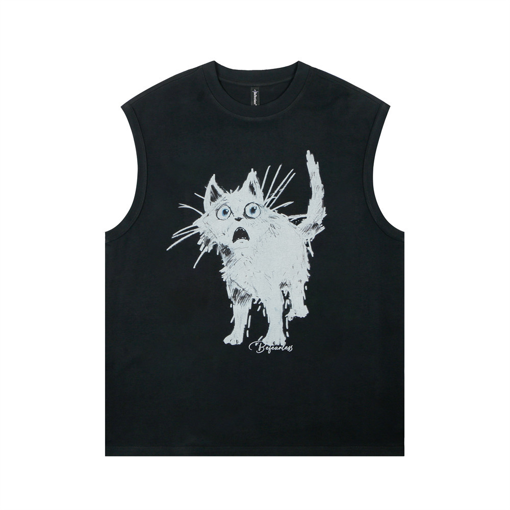 Fun Hand-painted Cat Print Vest Men's Hip Hop