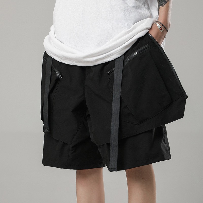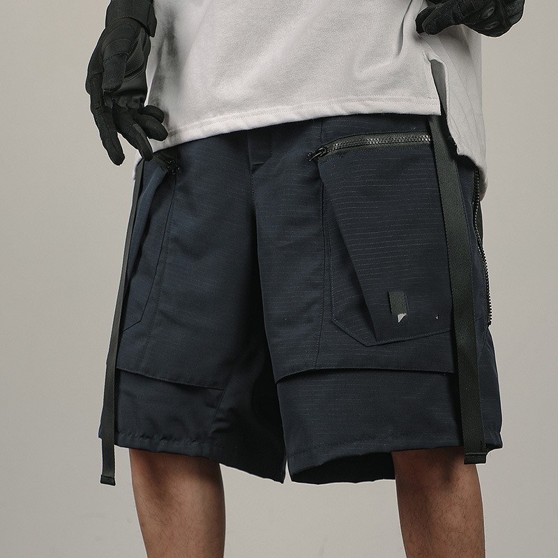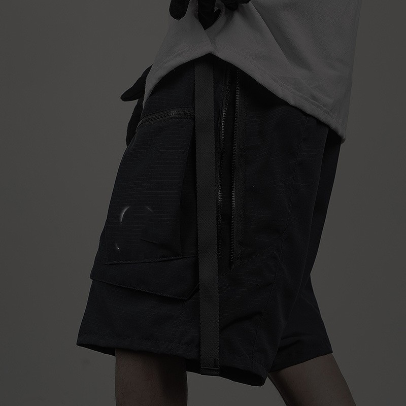 Functional Style Dark Double Sided Ribbon Shorts