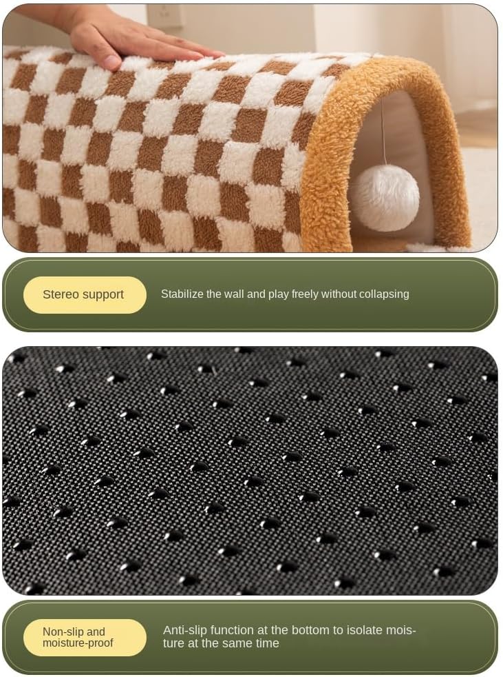 【2-in-1 Funny Plush Plaid Cat Tunnel Cat Bed】: Toy and bed - Our cat can nap, run, hide-and-seek, chase and sleep in our simple Kitty collapsible tunnel tube .Better fluffy plush material.