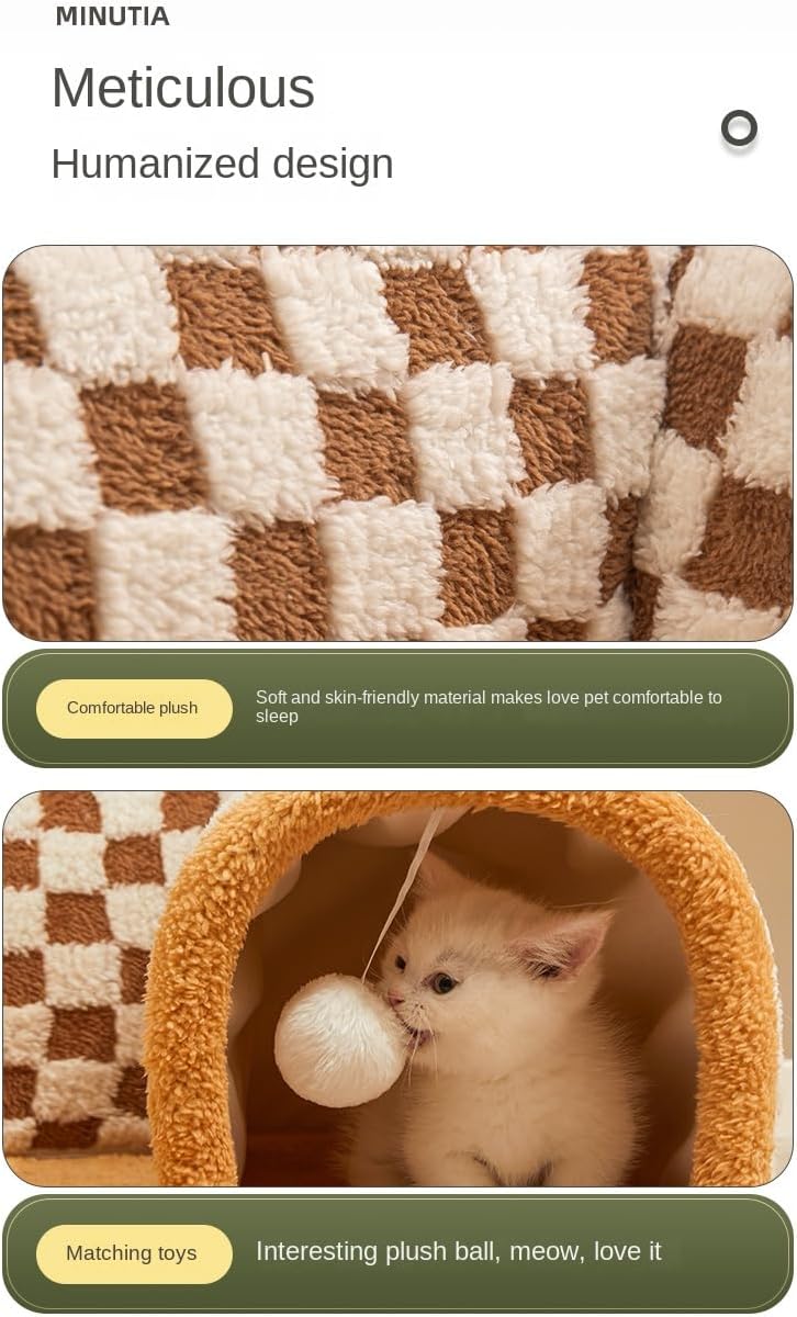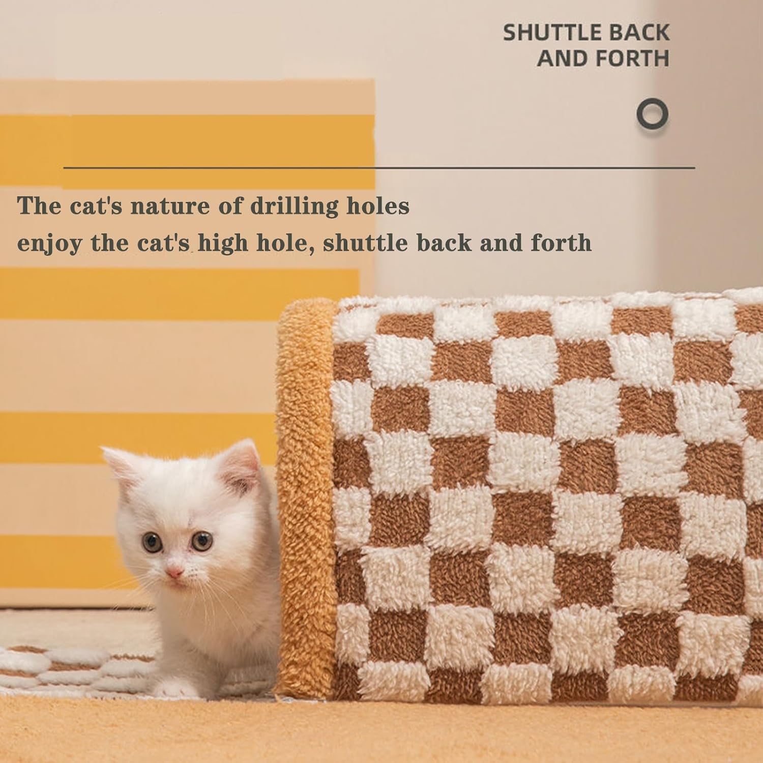 【Winter Pet Plush Bed Cats】An environment full of can provide cats with a better sleep. the 2-in-1 funny plush plaid cat tunnel cat bed is not only suitable for cats to play, but also provides cats with a warm space to make them their own. favorite new place.