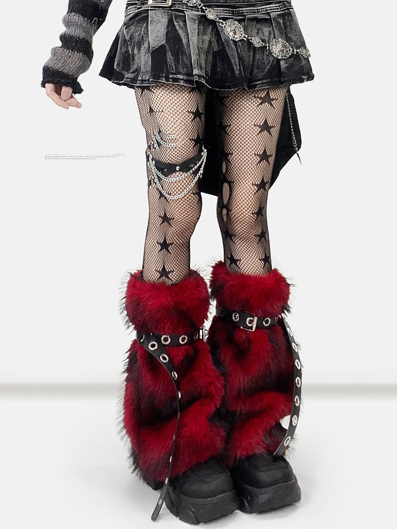 Fuzzy Raw-edge Wine-red Leg Warmers With A Slight Flared Mid-calf Design