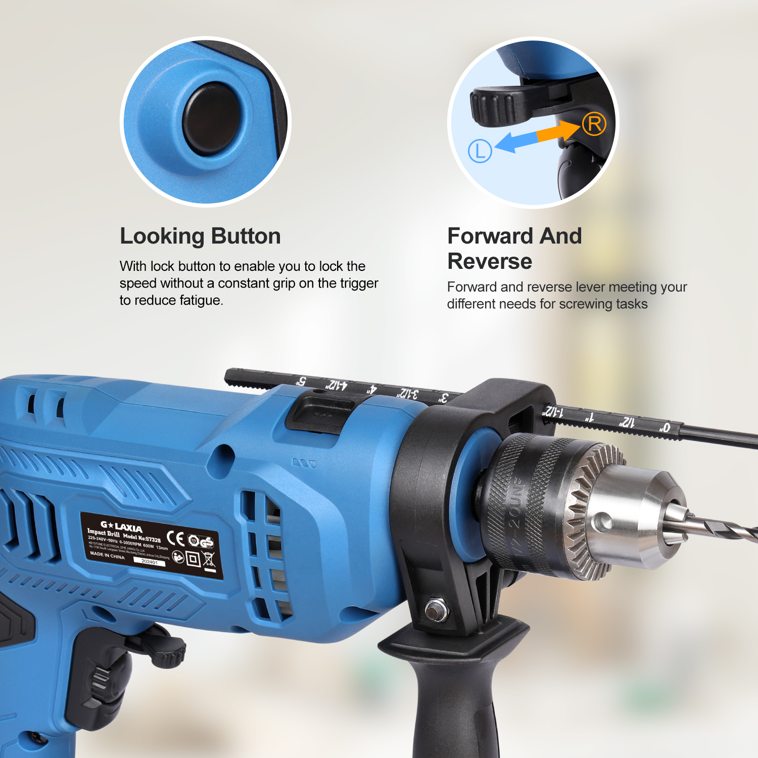 G LAXIA 550W Hammer Drill, Speed Variable 3000 RPM, 13mm Chuck, Electric Hammer And Drill 2-in-1 ,Package Contains 105 Accessories