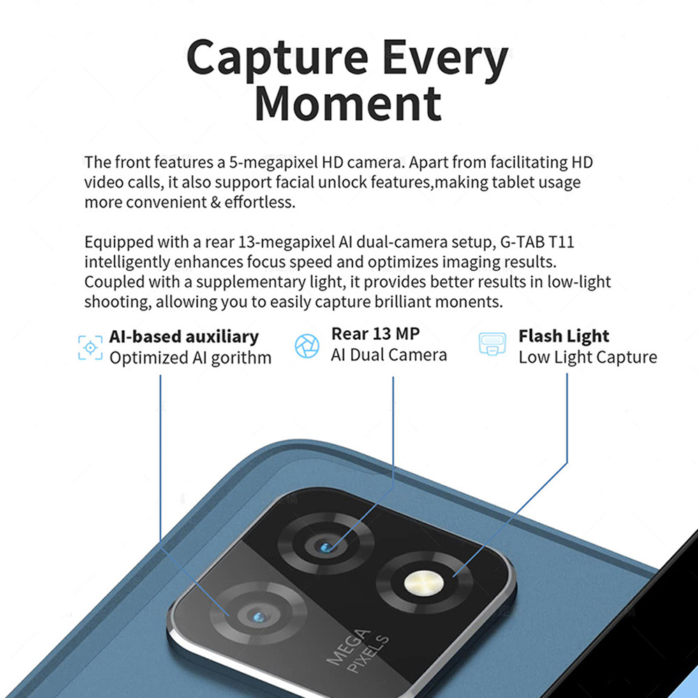 Equipped with an Octa Core 1.6GHz processor and 8GB RAM (4GB +4GB Expansion) + 128GB ROM, the G-Tab T11 Android Tablet delivers smooth multitasking and ample storage for your apps and files.