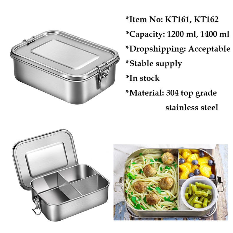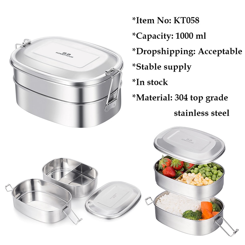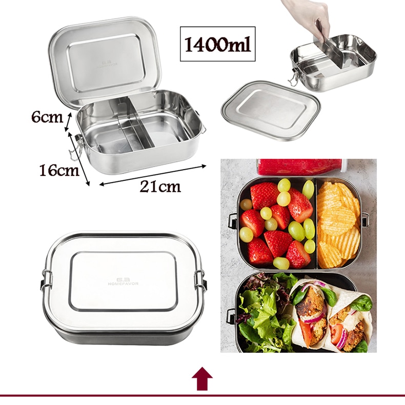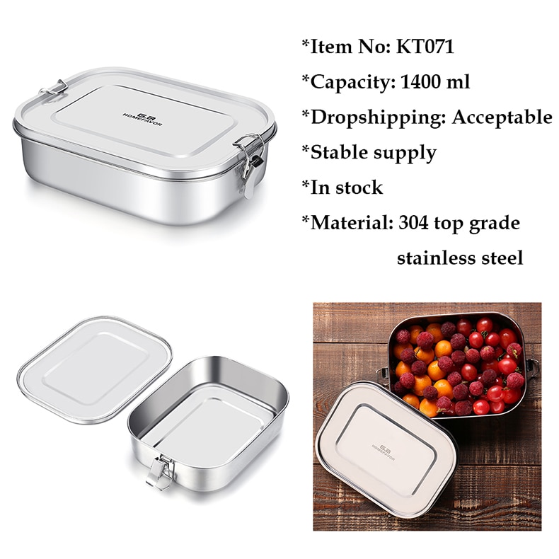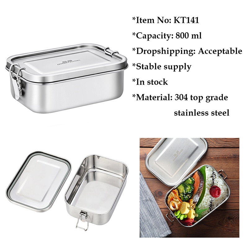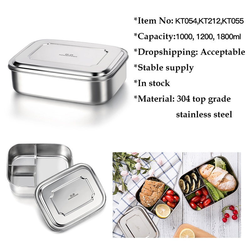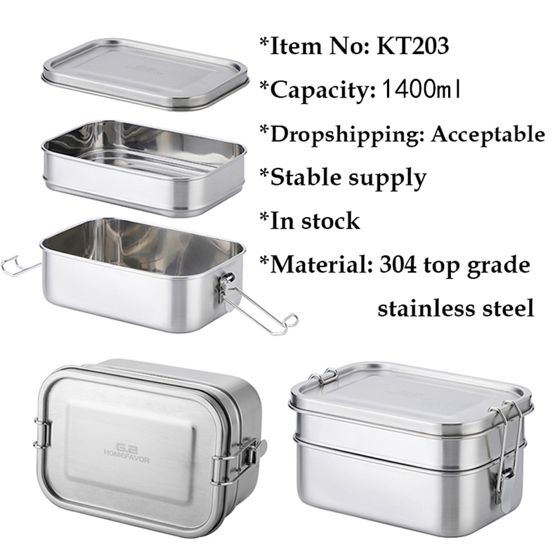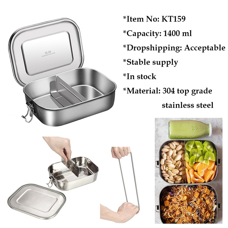 G.a HOMEFAVOR Custom Lunch Box For Kids Food Container Bento Box 304 Top Grade Stainless Steel Storage Thermal Metal Box Stock