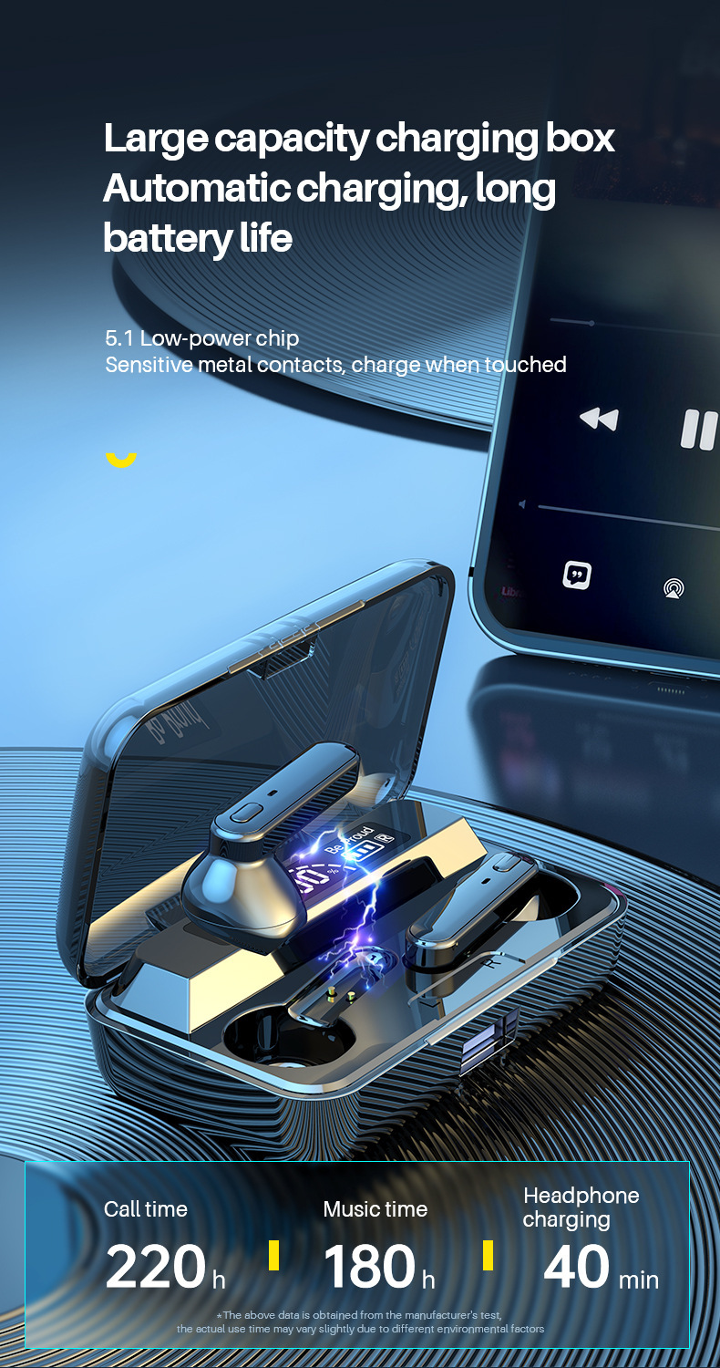 Function: battery display, call function, voice control, music support, multi-point connection