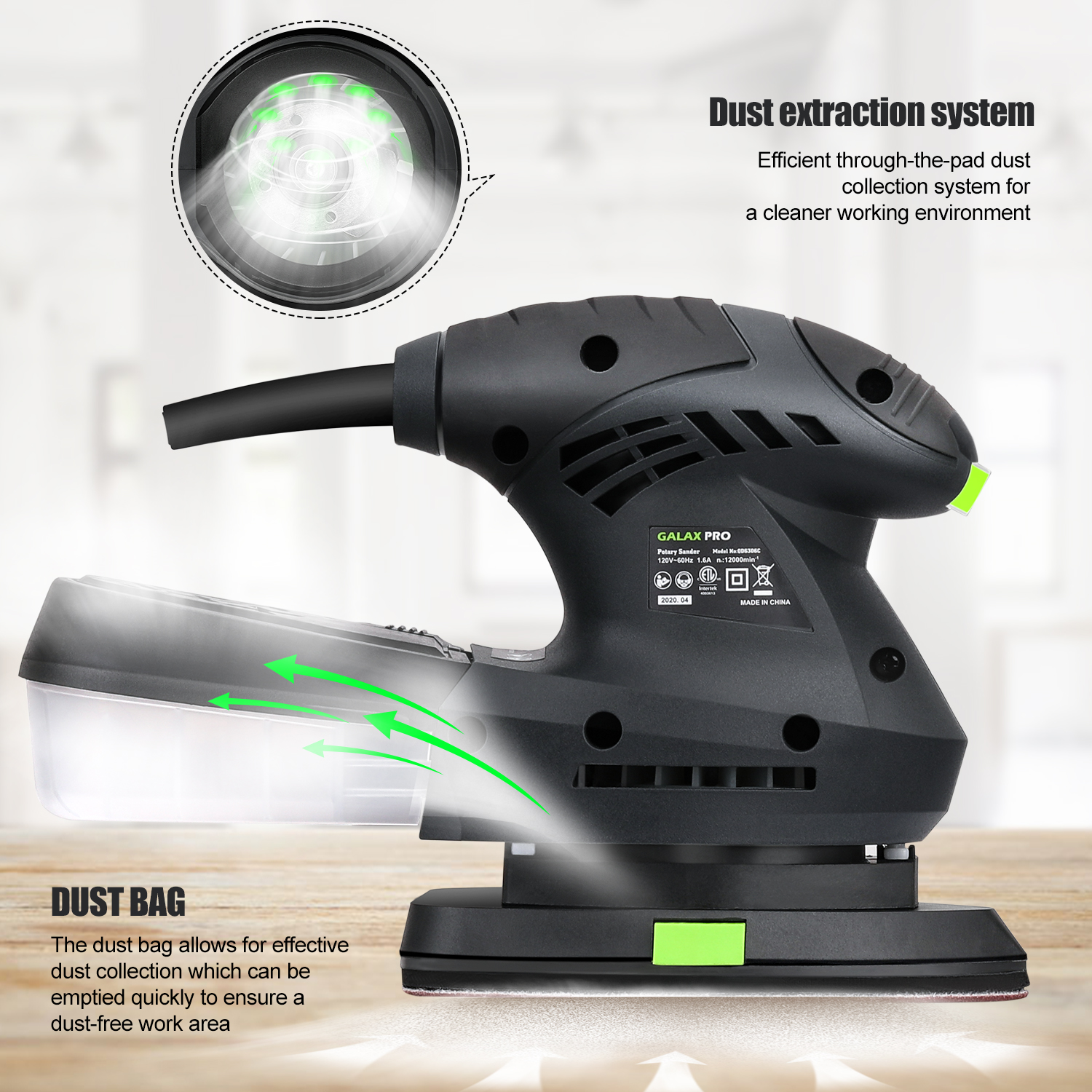 Removable dust box, effectively collects dust generated during work.