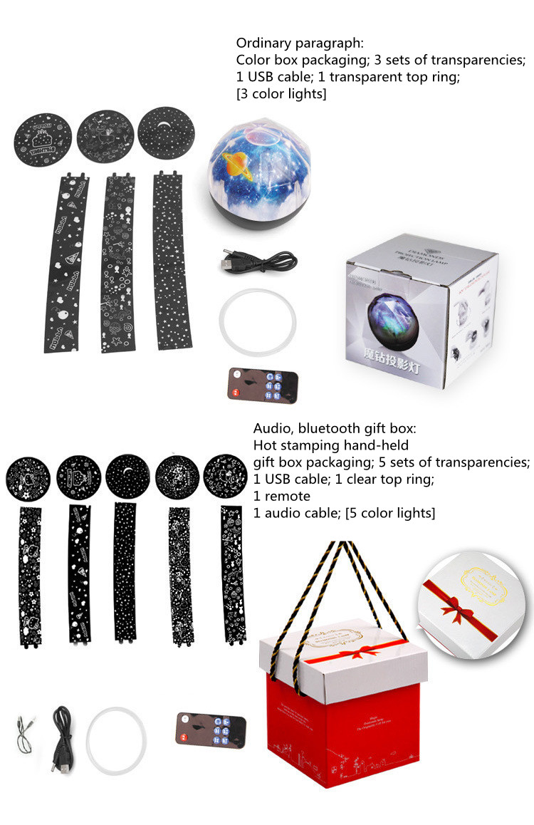 Bring the magnificence of the universe inside your home with the Galaxy Projector Lamp. This versatile night light is a great way to illuminate and decorate any room at the same time. Diamond shape with incision treatment, earth pattern inside the shell brings dramatic atmosphere when lights on. You and your family will truly be amazed as you are surrounded by different planets and constellations in vivid colors. Ideal for home, party, shopping mall, restaurants decorations, etc.