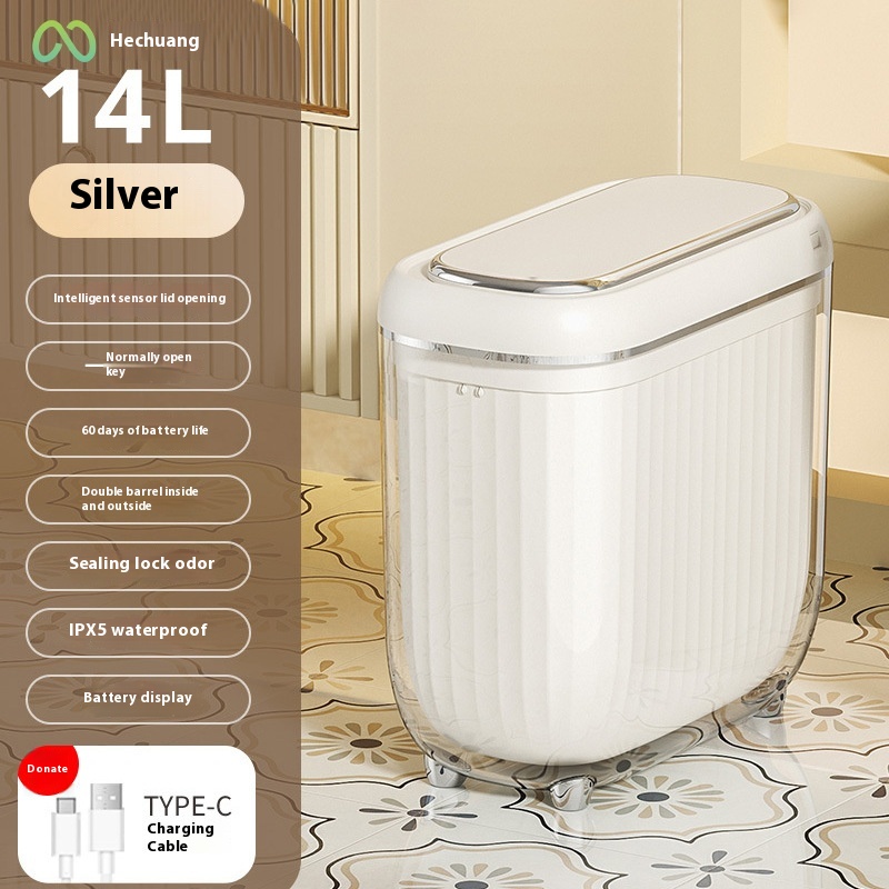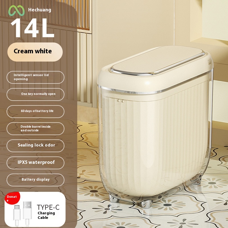 Color: slit intelligent induction gray box (14L black), slit intelligent induction gray box (14L White), slit intelligent induction gray box (14L cream white), slit intelligent induction gray box (14L silver ribbon PET outer barrel), Gap intelligent induction gray box (14L black and silver ribbon PET outer barrel), Gap intelligent induction gray box (14L cream ribbon PET outer tube)