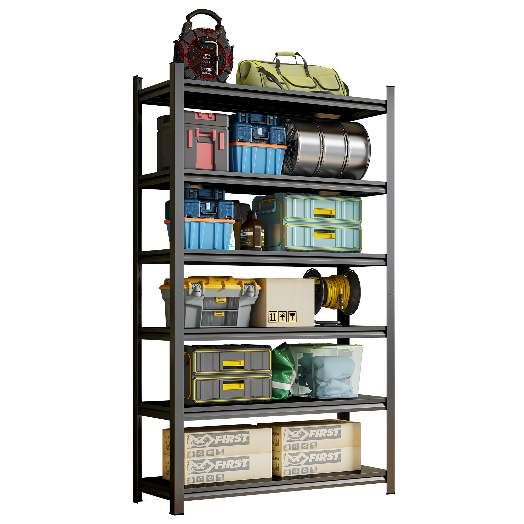 Garage Storage Rack, 6-Story Metal Shelves, Adjustable Partition Storage Unit, Supermarket, Home, Garage, Basement Storage Rack, Black, Requires Assembly