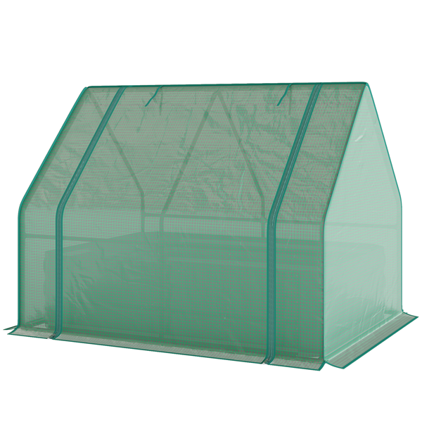 Features: - Use our raised planter and mini greenhouse together or separately - The PE cover keeps the inside warm and protects from UV rays and mild rain - The galvanized steel planter does not warp and deform - Roll-up window for easy plant management - 3.9" extended cover prevents issues with wind - A planter keeps weeds away, and an open bottom provides excellent drainage - With three rods between the longer sides for stability and conveniently organizing plants in 2 areas - Assembly required Specification: - Color: Green, Dark Gray - Material: PE, Galvanized Steel - Greenhouse Dimensions: 50" L x 37.4" W x 36.2" H - Garden Bed Dimensions: 47.2" L x 35.4" W x 11.8" H - Planting Area Dimensions: 46.1" L x 34.6" W x 11.8" H - Windproof Level: 4 (wind speed below 17.5mph)