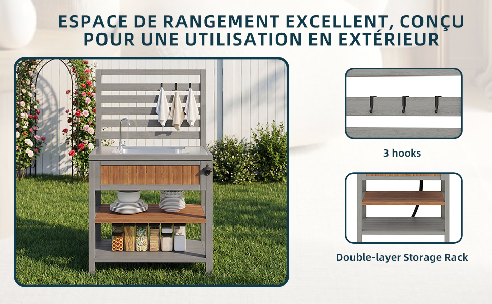 • Thoughtful Outdoor Storage: With 3 hooks and a double-tiered shelf, vertical space is used to its full potential. Ideal for hanging towels, tools, or small items – for greater efficiency and organization outdoors.