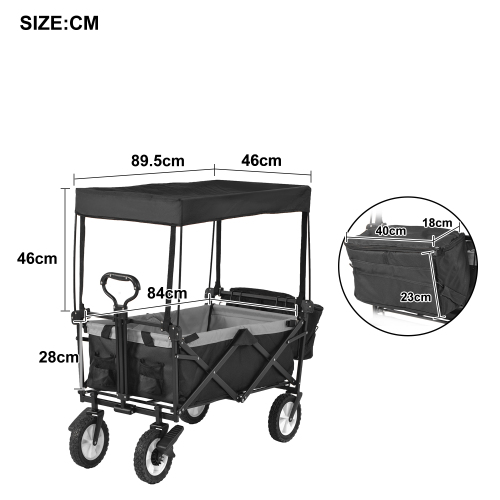 Product Name:Garden Cart with Romovable Canopy, Foldable Trolley Wagon 4 Wheels Front Cup Holder Cooler Bag Push Pull Handle Hand Truck (Black)