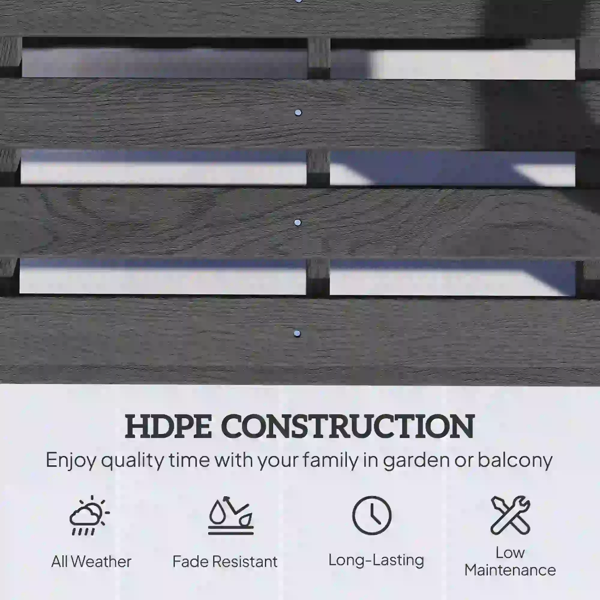 Features: - Love seat glider bench seats two people - HDPE frame which is strong enough to withstand all weather conditions - Sit back and gently rock at an angle from 0-45° - Armrests and a backrest for added comfort - Slatted surface to keep you cool and drain away rain - Assembly required Specification: Color: Distressed Black - Material: HDPE - Overall Dimensions: 49.5" W x 28.75" D x 34.25" H - Seat Size: 42.75" W x 19.75" D - Backrest Size: 20" L x 42.75" W - Seat Height: 15.75" - Rock Angle: 0-45° - Weight Capacity: 528 lbs.