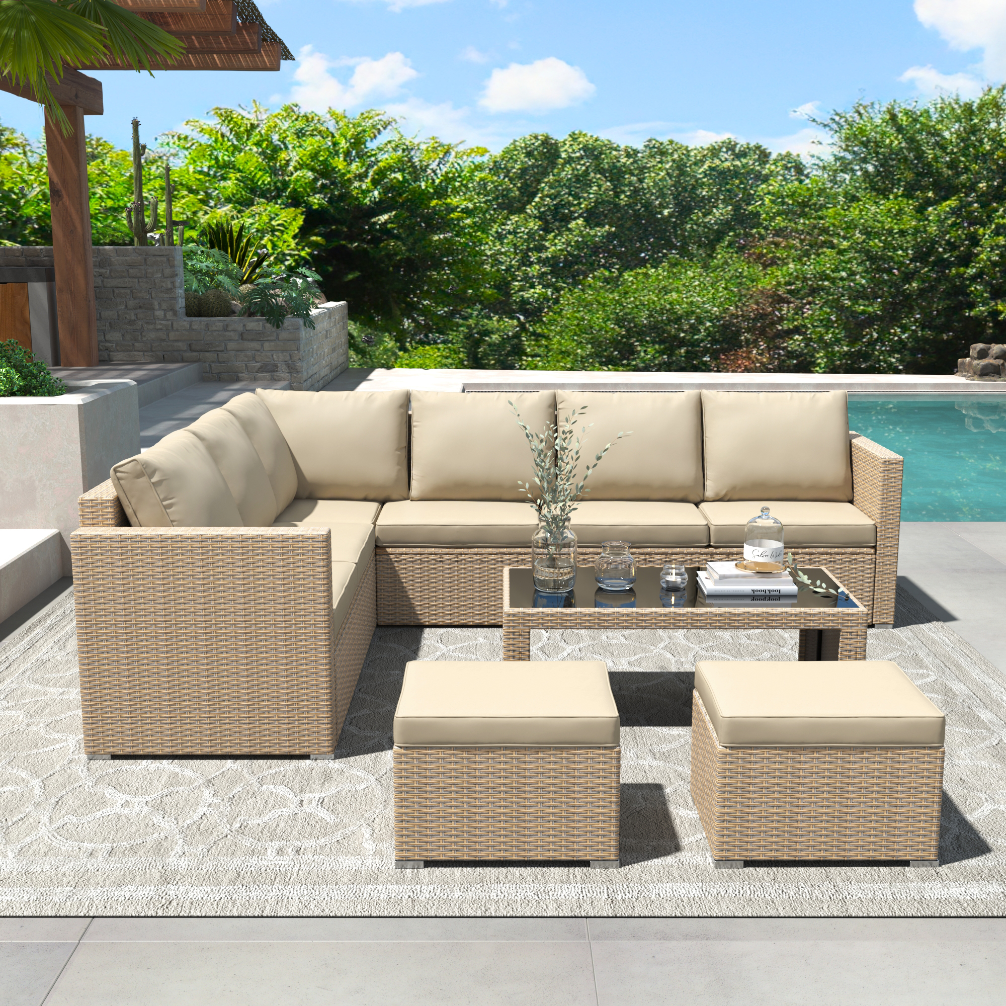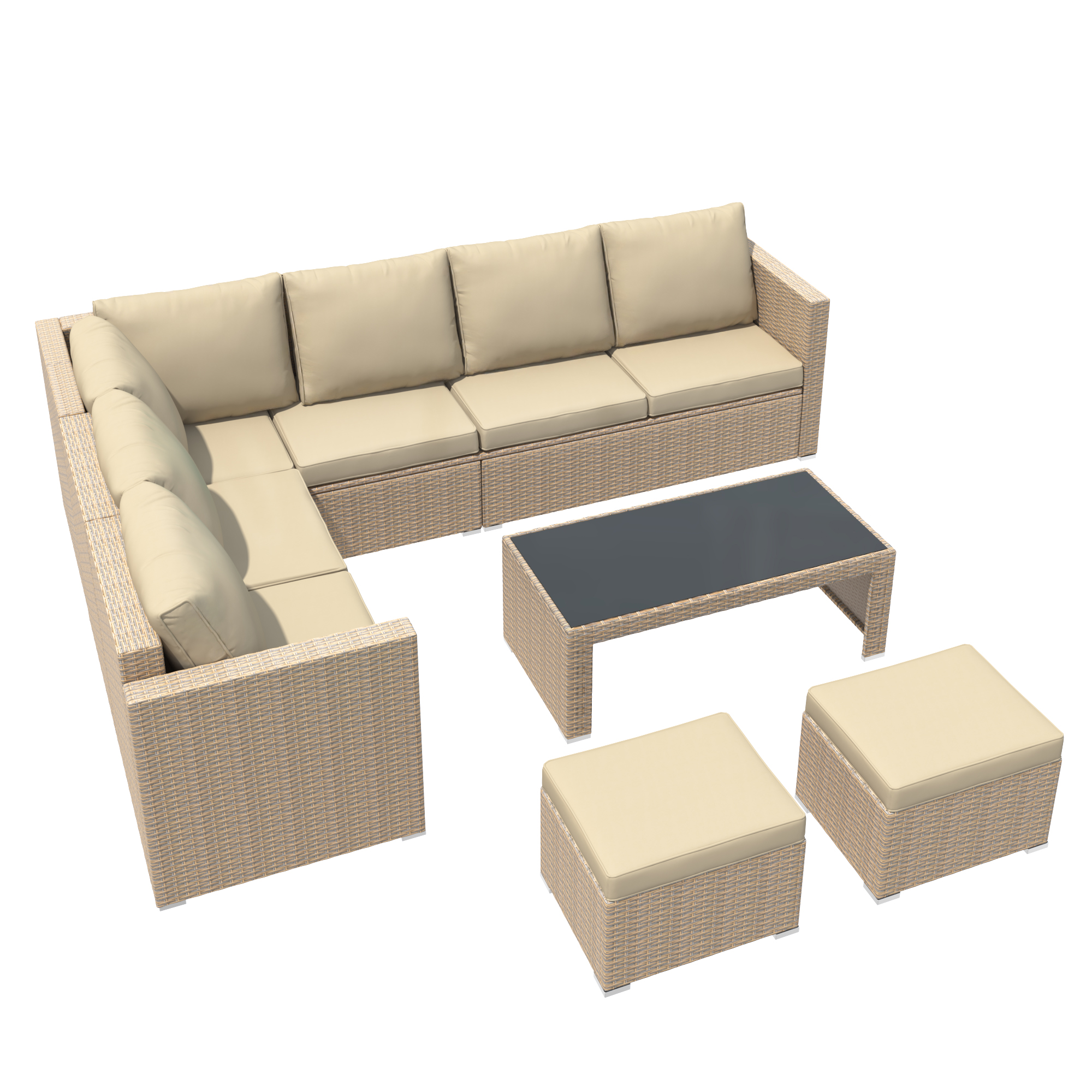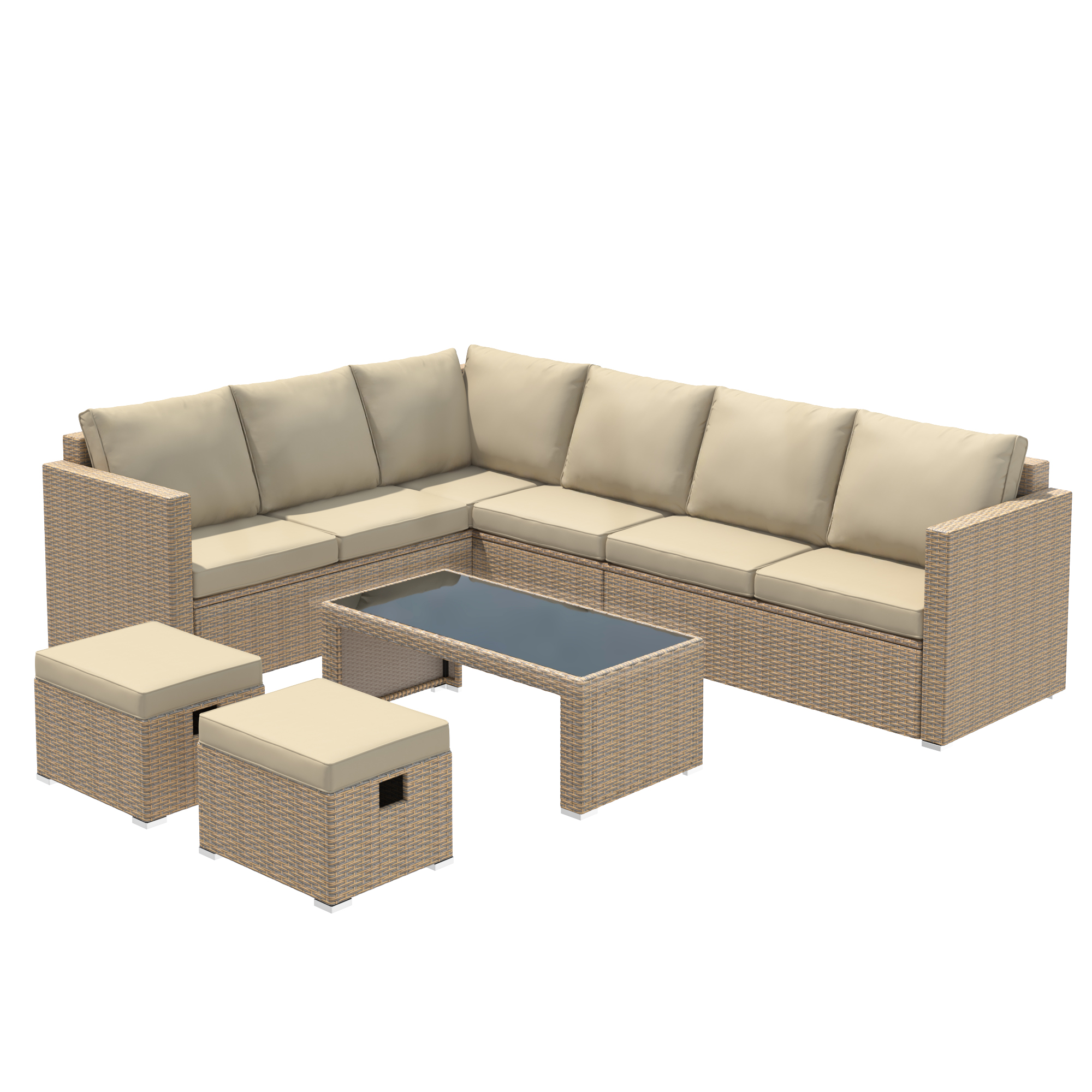 Product Name:Garden Corner Sofa Set Rattan Sofa Outdoor Furniture with Coffee table 2 stools,Khaki