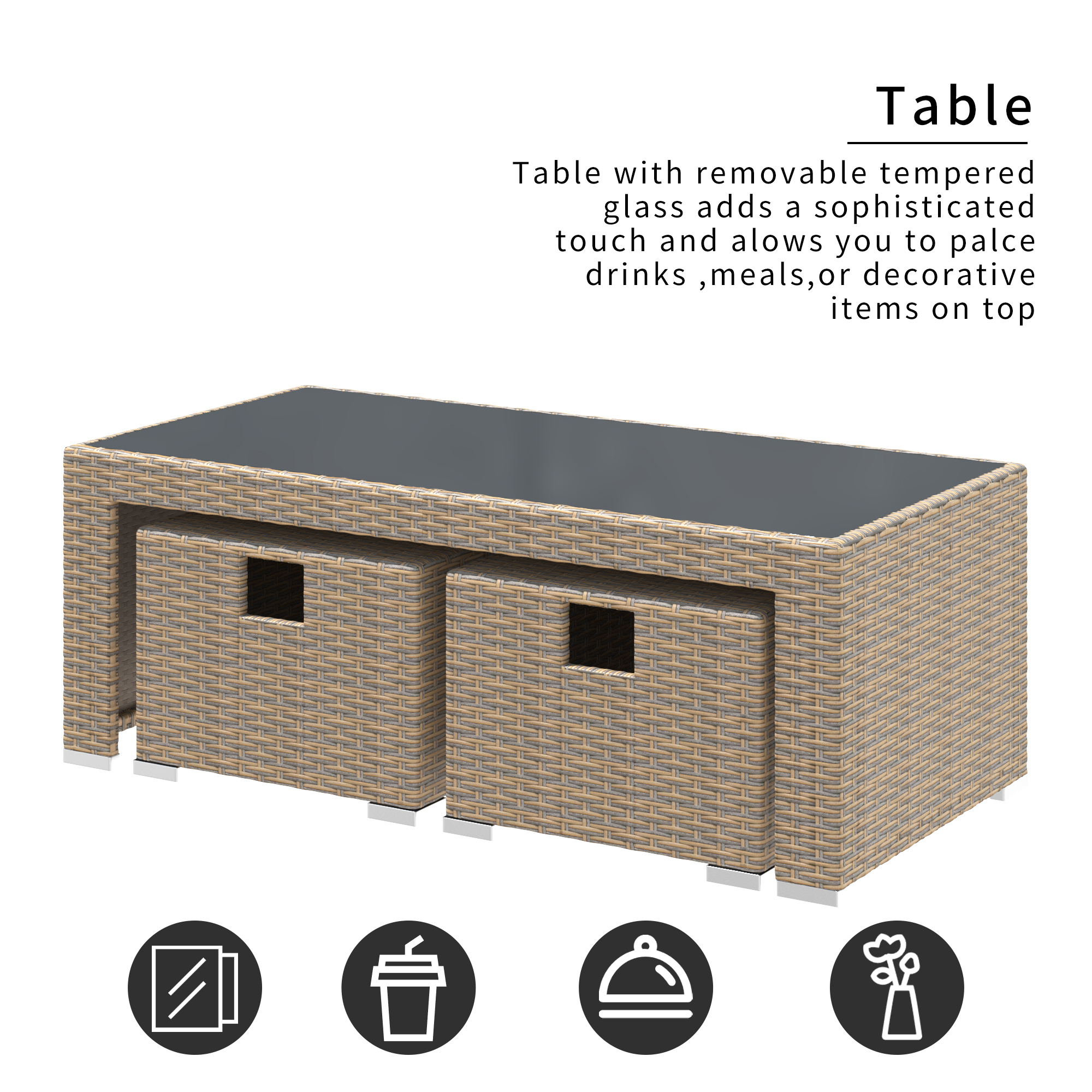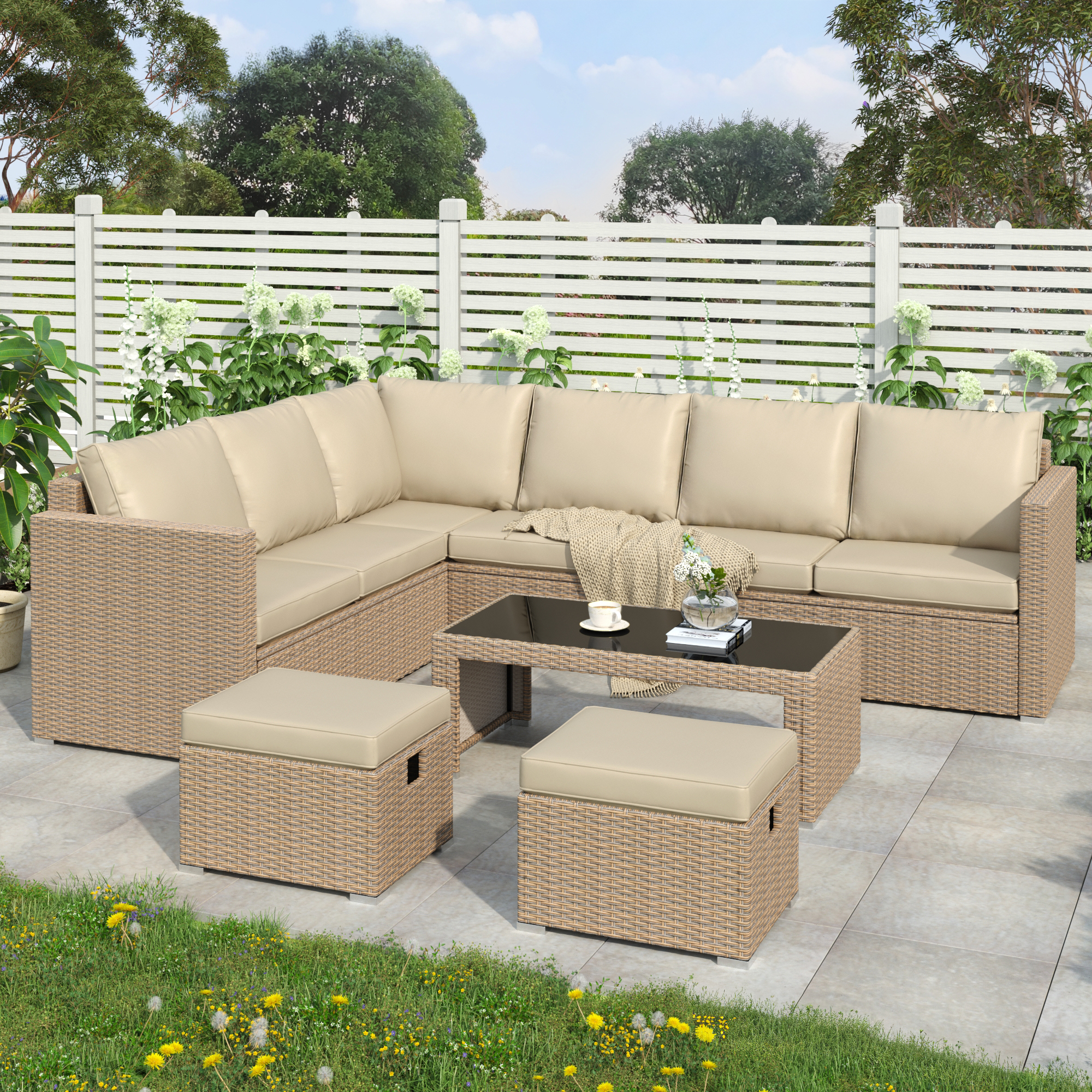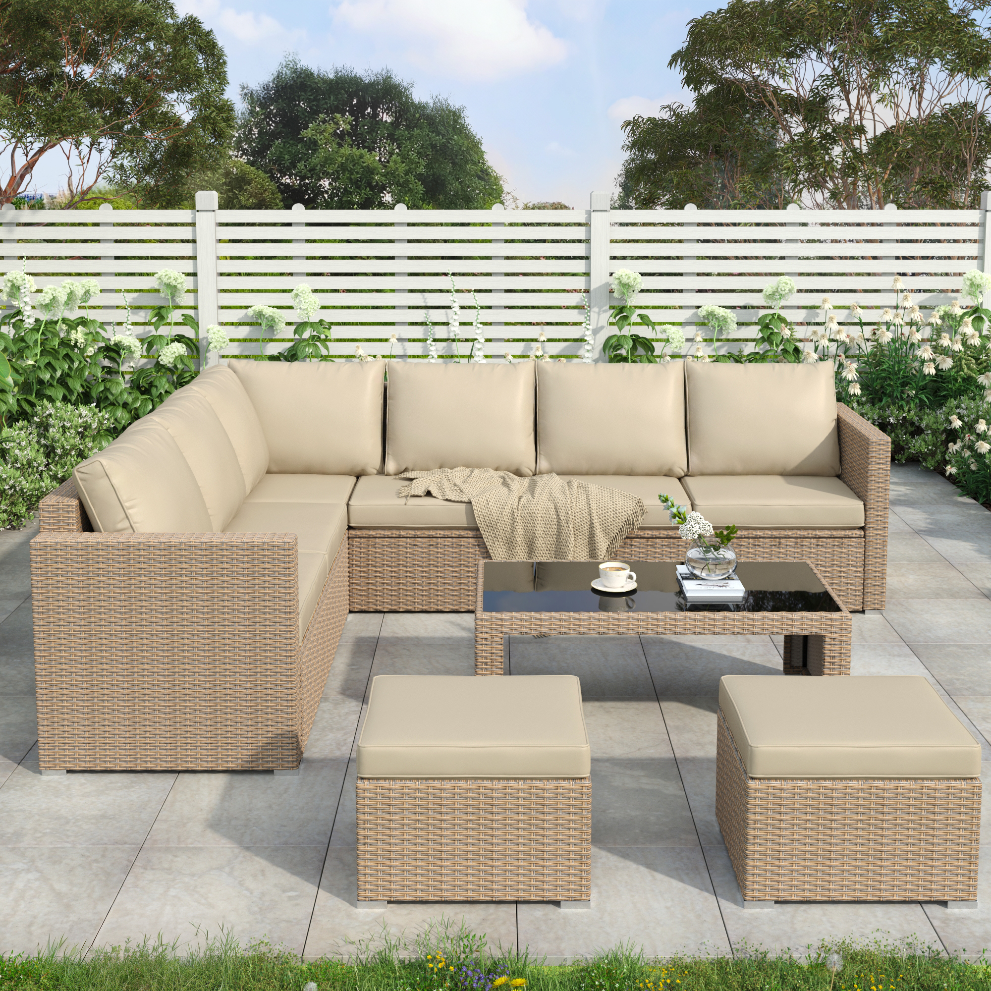 Product Name:Garden Corner Sofa Set Rattan Sofa Outdoor Furniture with Coffee table 2 stools,Khaki