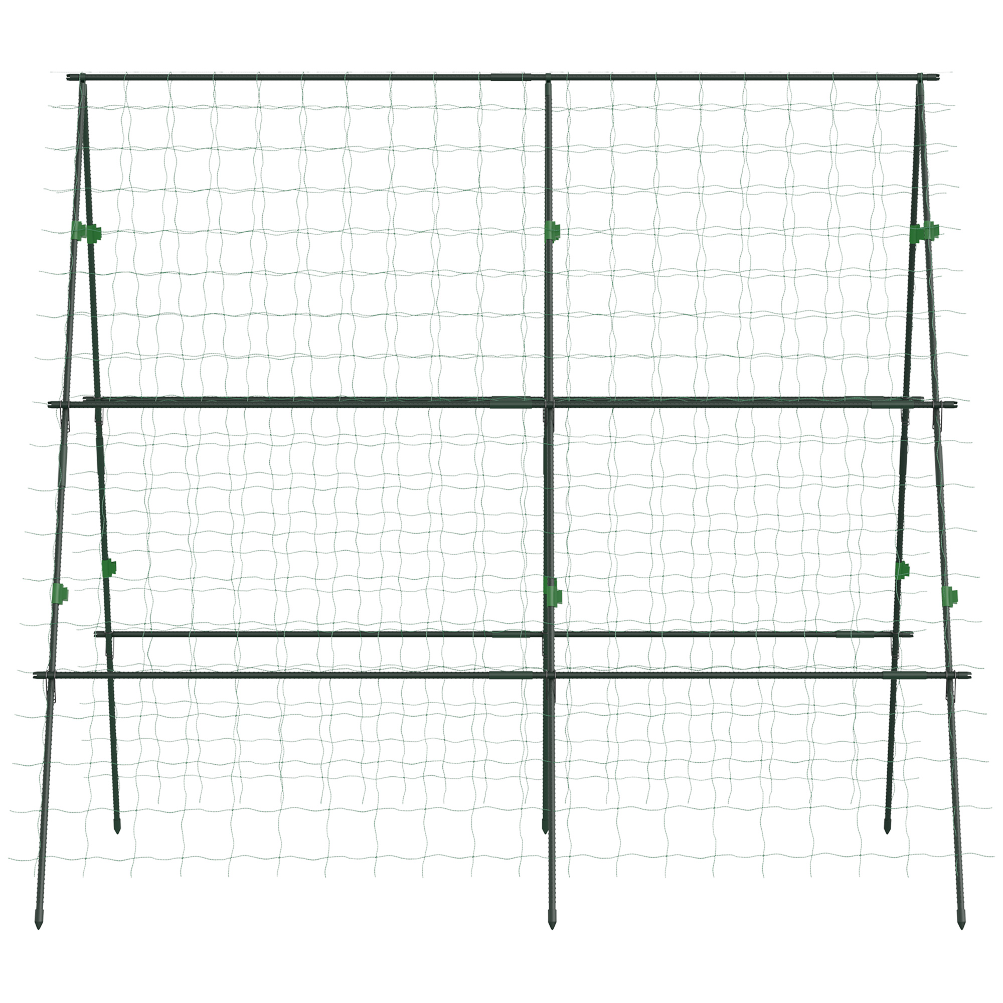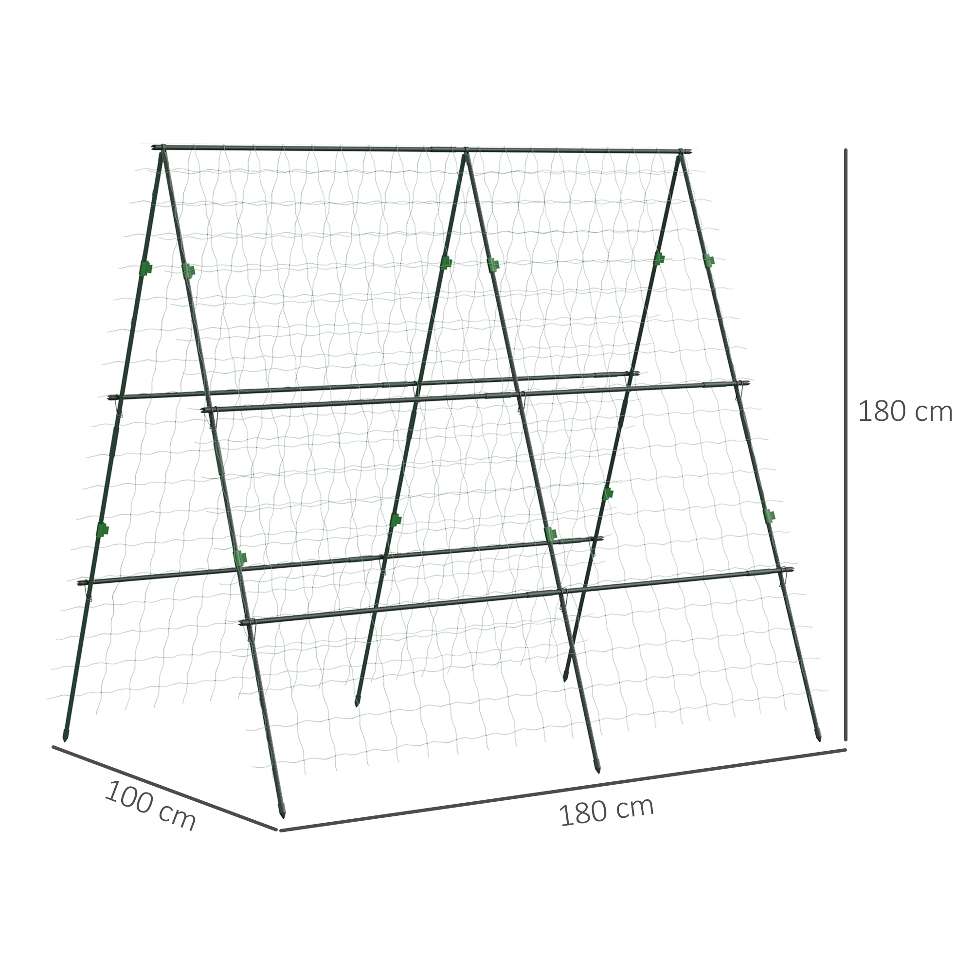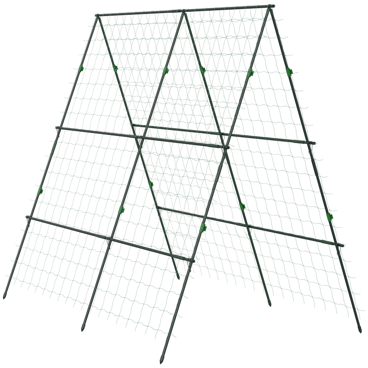 This garden trellis for climbing plants, equipped with a practical crop protection net, supports your plants' healthy growth. The two lattice walls offer a great climbing area for vine plants. Its firm, powder-coated steel frame suits outdoor conditions perfectly. Blending seamlessly with the greenery, the cucumber trellis for raised bed remains inconspicuous. It's great for garden use or in conjunction with a raised bed.