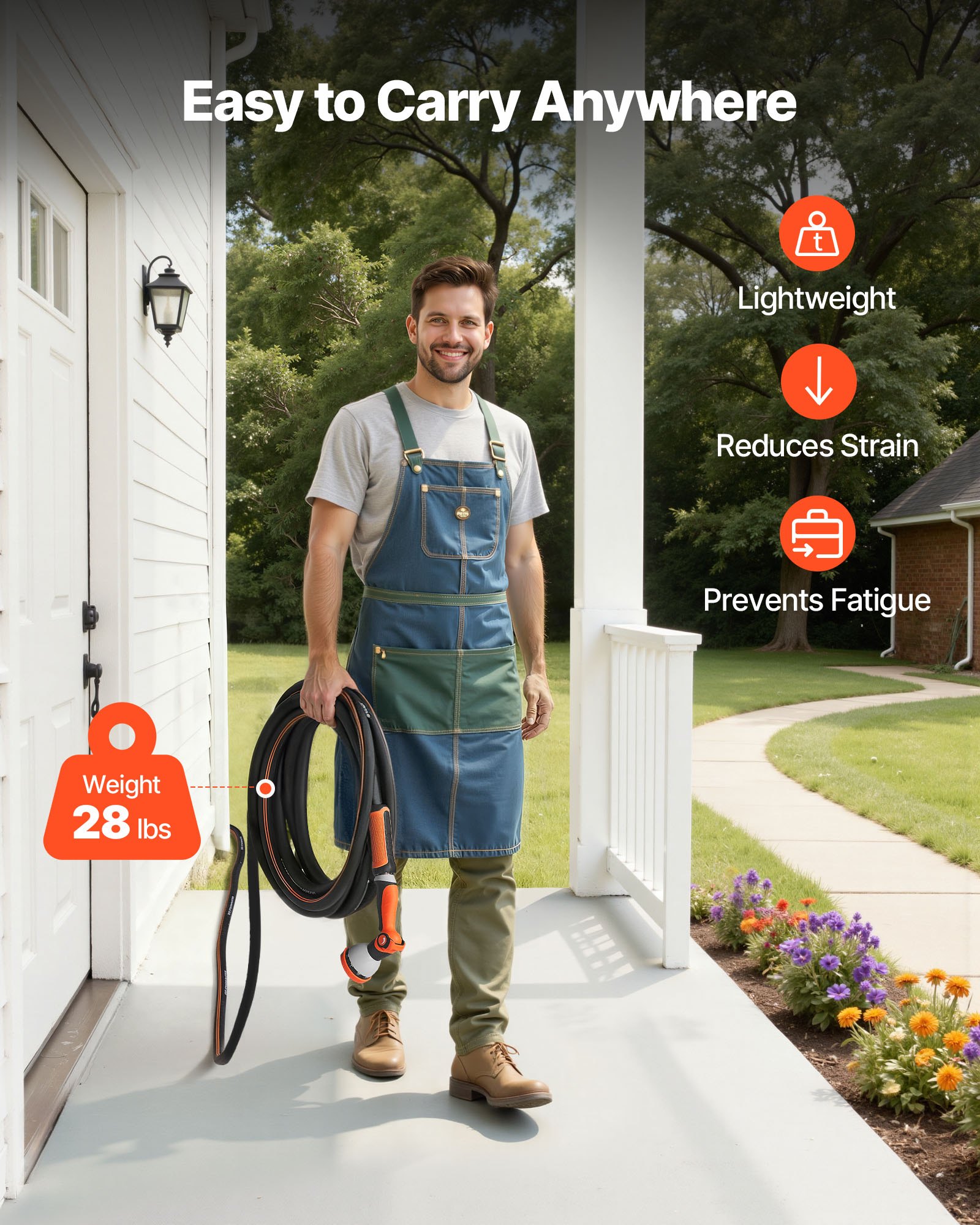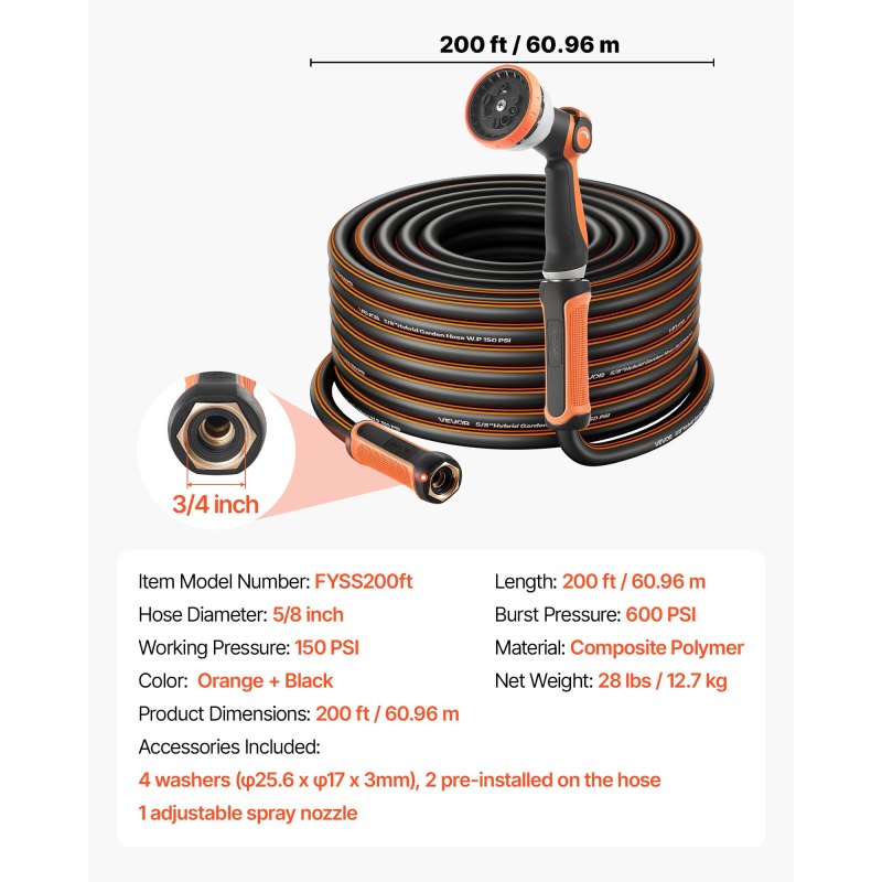 4-Layer Heavy-Duty Hose: Made from hybrid rubber with a reinforced 4-layer structure, this 200 ft long and 5/8 in dia. garden hose is ideal for harsh outdoor conditions. It handles up to 600 PSI burst pressure and 150 PSI working pressure without cracking under high pressure. The UV-resistant outer layer slows aging, extending the hose's lifespan