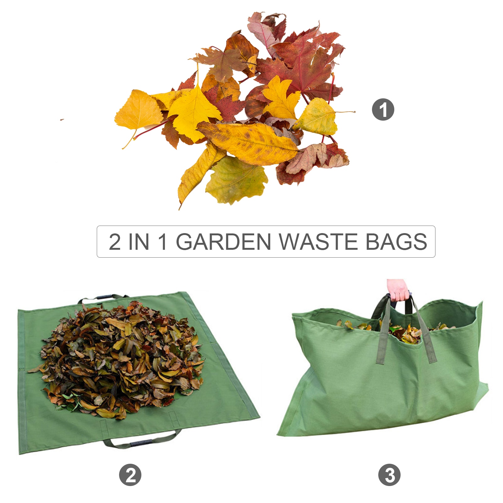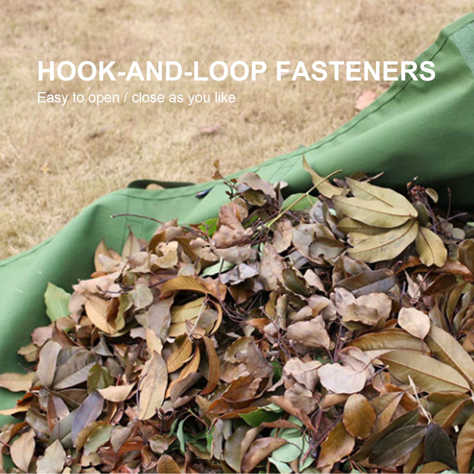 The hook-and-loop fasteners make it easy to make a garden tarpaulin or garden bag. This gardening bag will last a long time under normal use. This leaf bag can help you clean up your garden or yard, harvest the fruits and vegetables, organize your items whether in your travel or in your home.