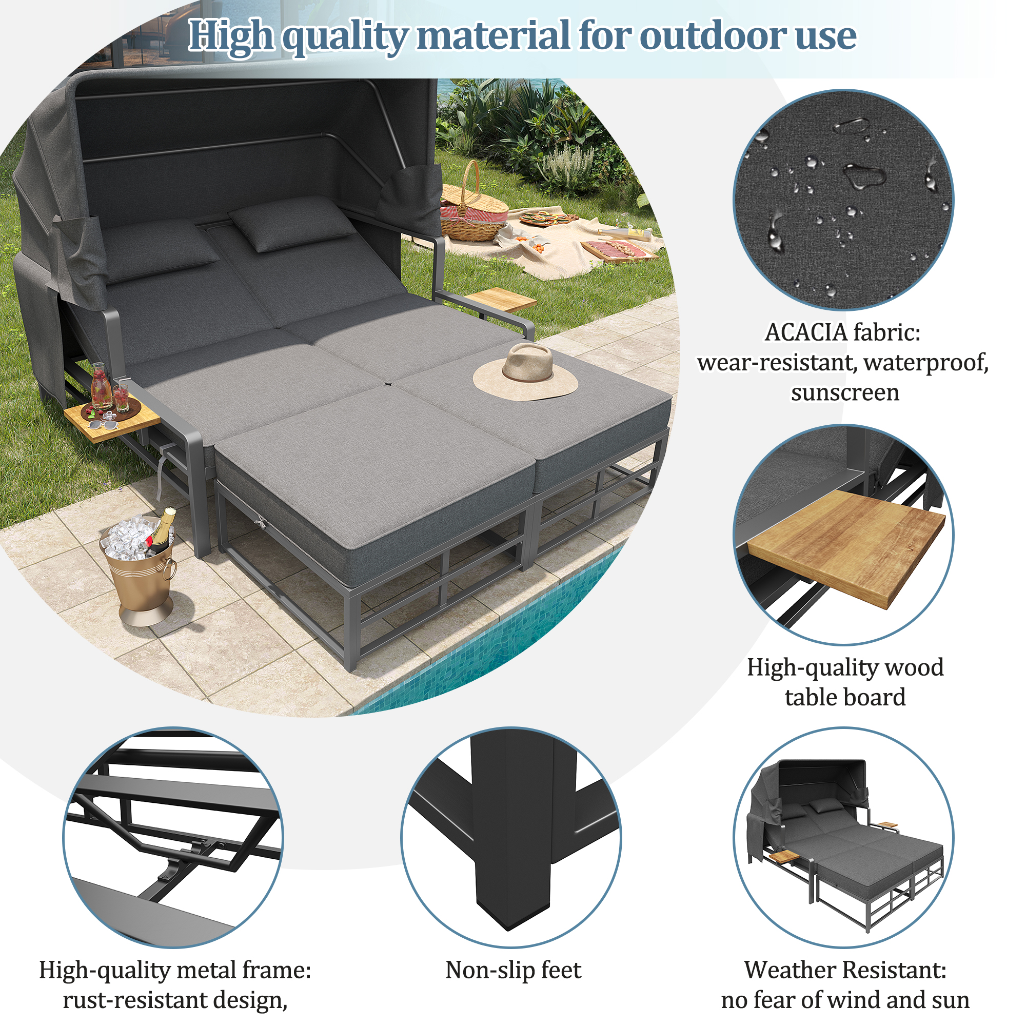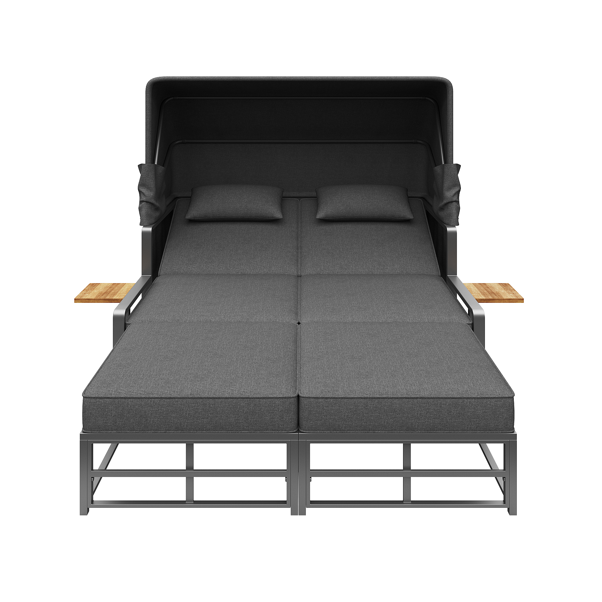 This outdoor sofa is multifunctional and can be used as a comfortable sofa or a bed for a variety of outdoor activities. Equipped with an adjustable backrest and retractable canopy, it provides optimal comfort and shade. The thick cushions and fastening straps are designed to increase ease of use and comfort for hours of reading, resting or relaxing in a supine position.