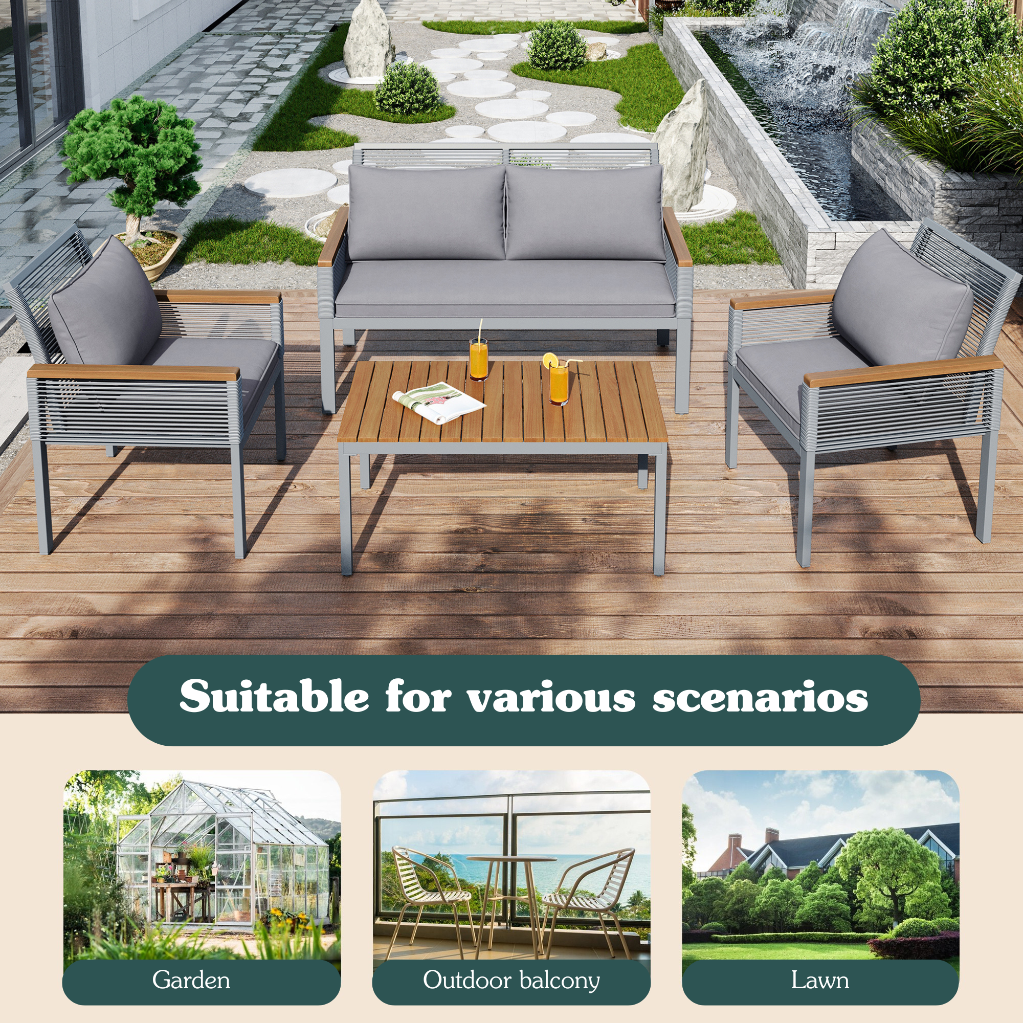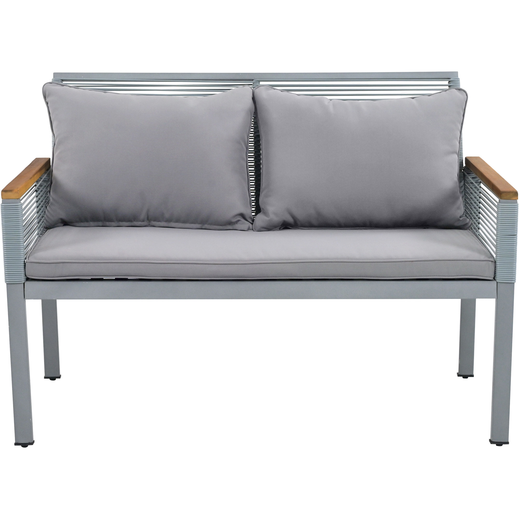 Product Name:Garden lounge set, garden furniture set with comfortable cushions, double sofa, 2 armchairs and table, outdoor, rattan, table and chairs, grey