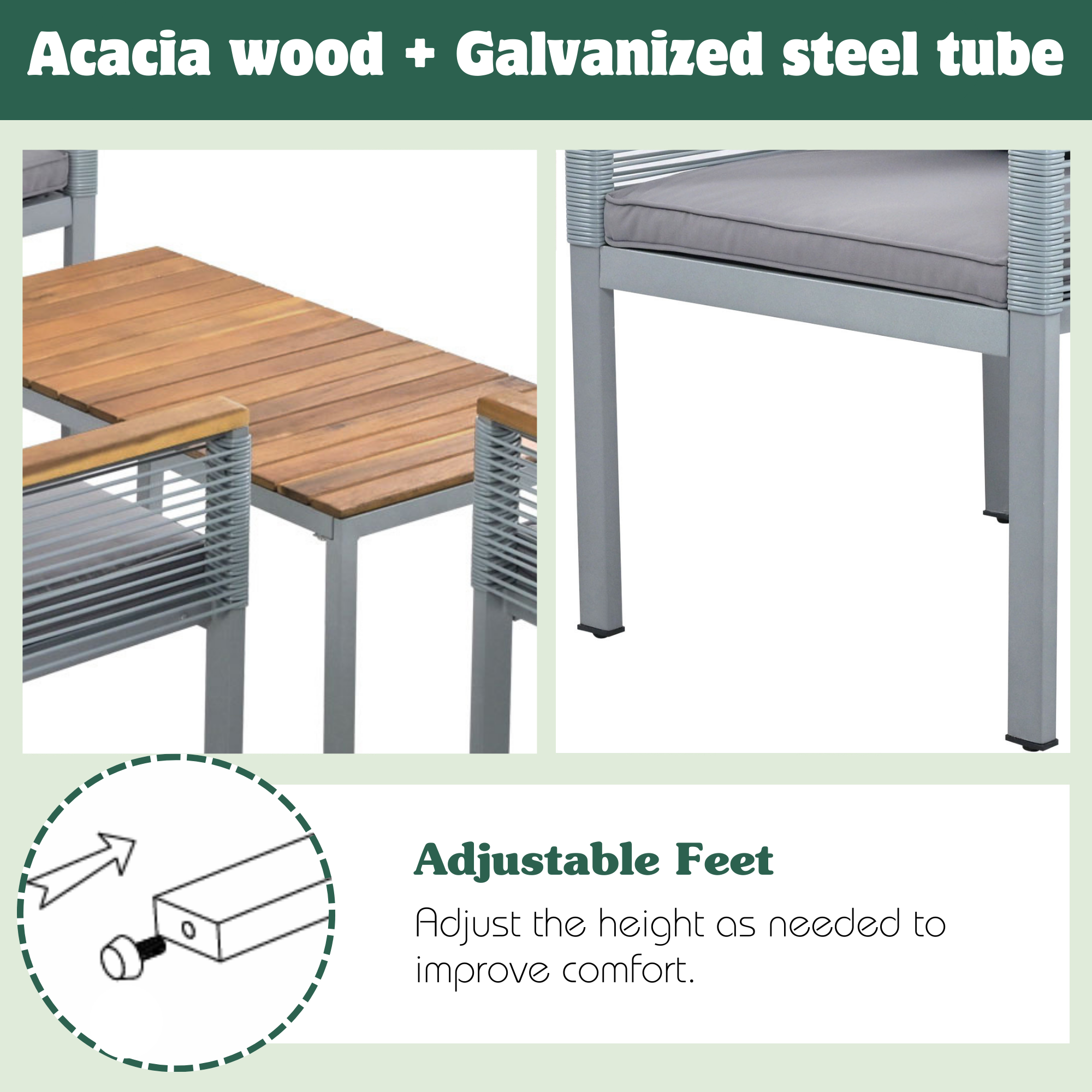 | Material | Galvanized steel tube, anti-rust plastic spray, UV protection material & poly rattan, sponge and acacia. |