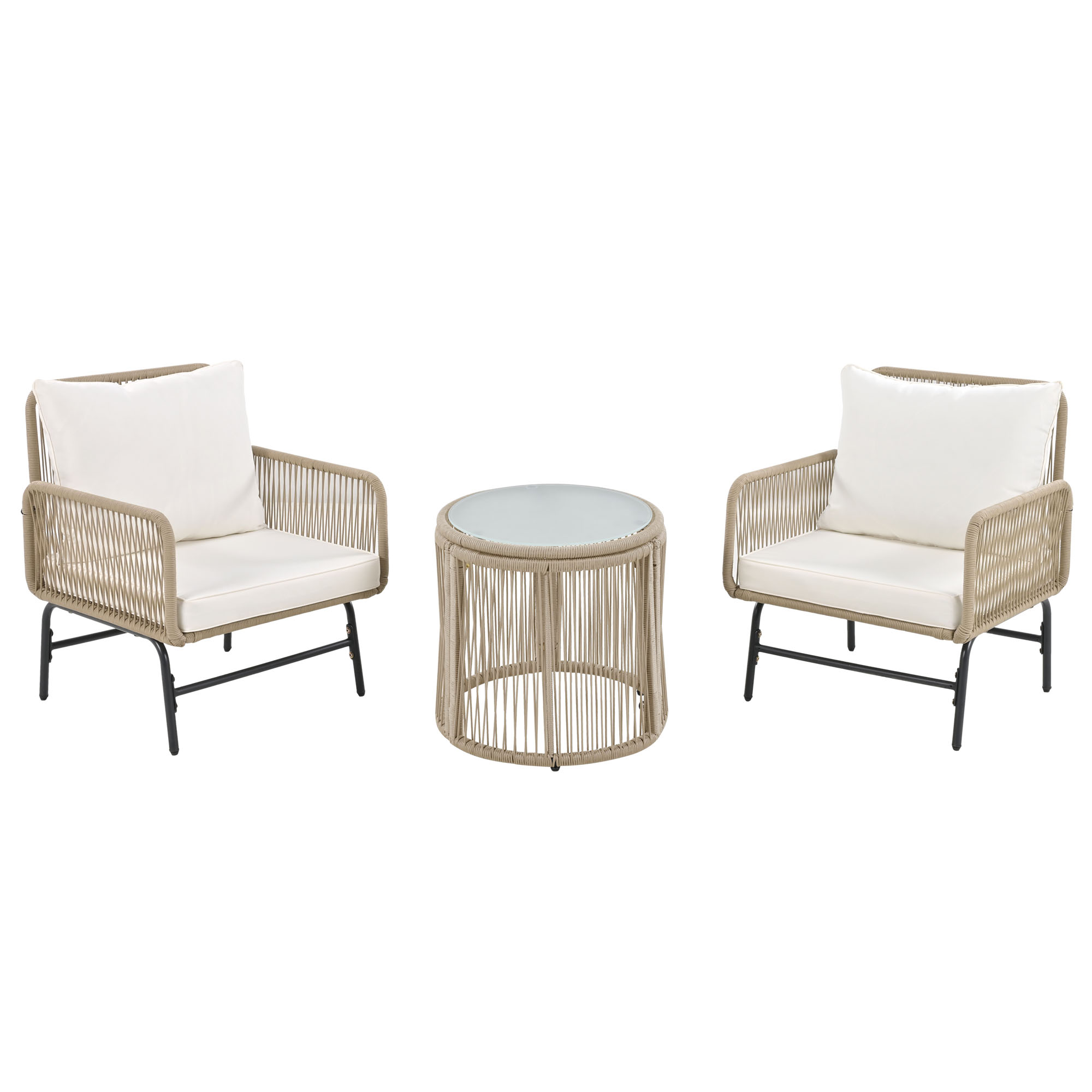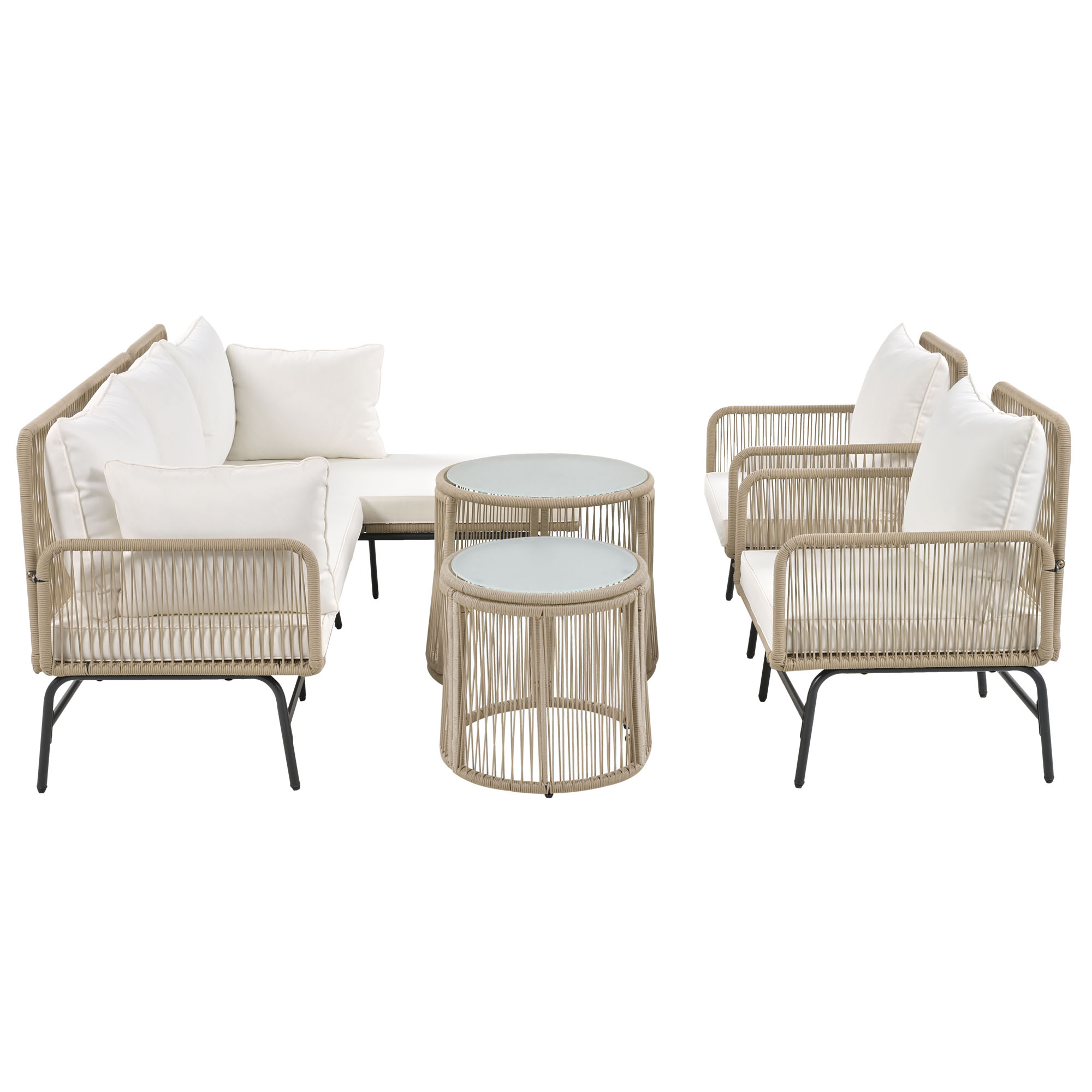 Product Name:Garden lounge sofa set, outdoor furniture set, iron frame and beige rope weave, beige, two armchairs, two two-seater sofa and two round tables (all cushions included)