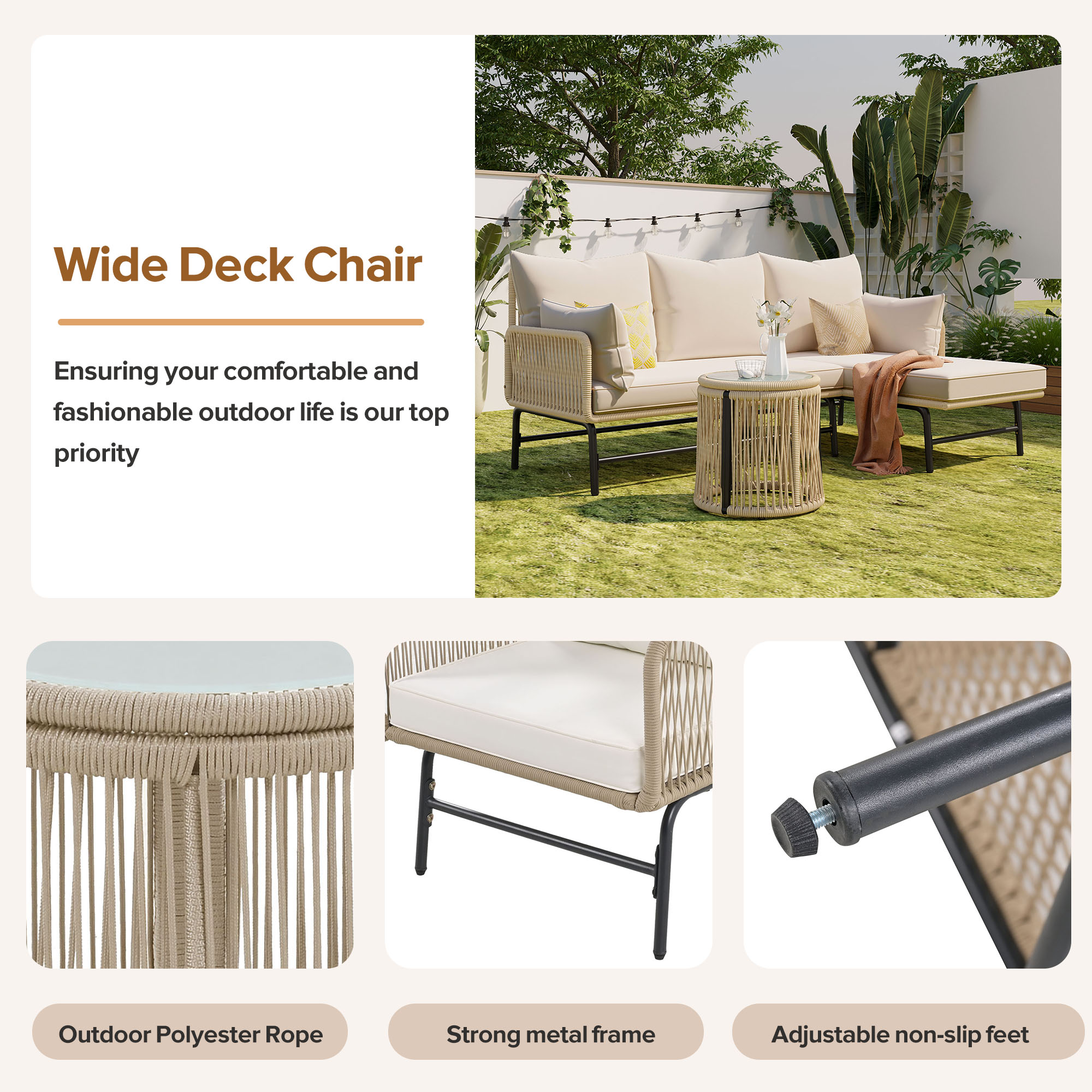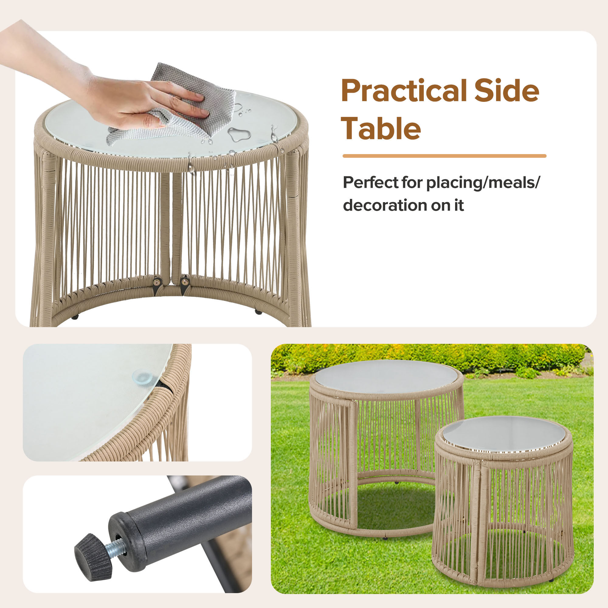 - Exquisite design: The rope is completely hand-woven, pleasant to the touch and easy to clean, light-resistant and waterproof. The iron frame has a smooth, rust-proof powder coating, which is sturdy and durable, providing a longer service life and a better user experience.