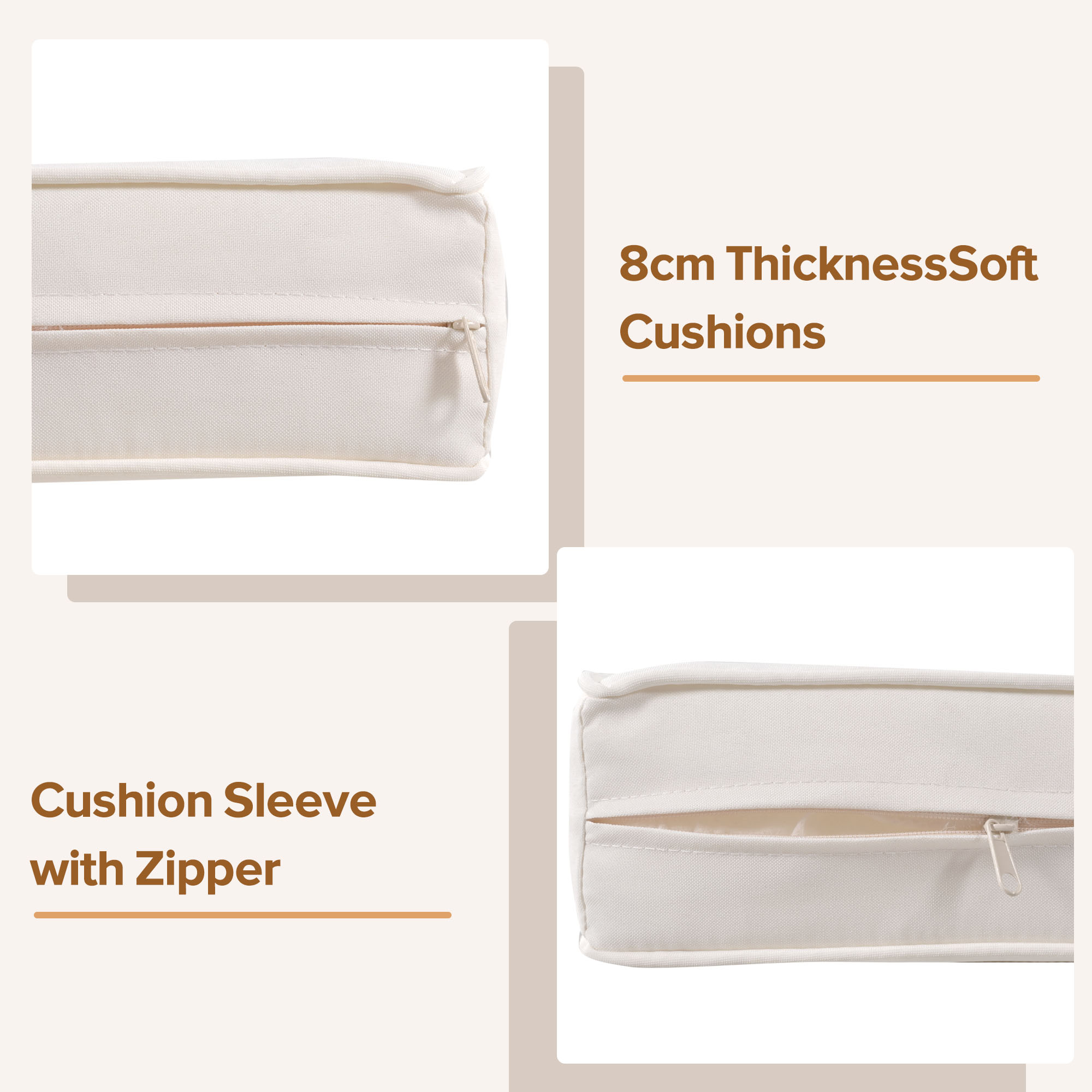 - Comfortable and deep seating: The 8 cm thick sponge seat cushion and thickened backrest provide exceptional comfort while relaxing. The cushion cover is made of high-quality fabric, durable and washable. In addition, the removable cushion cover has a zip for easy cleaning.