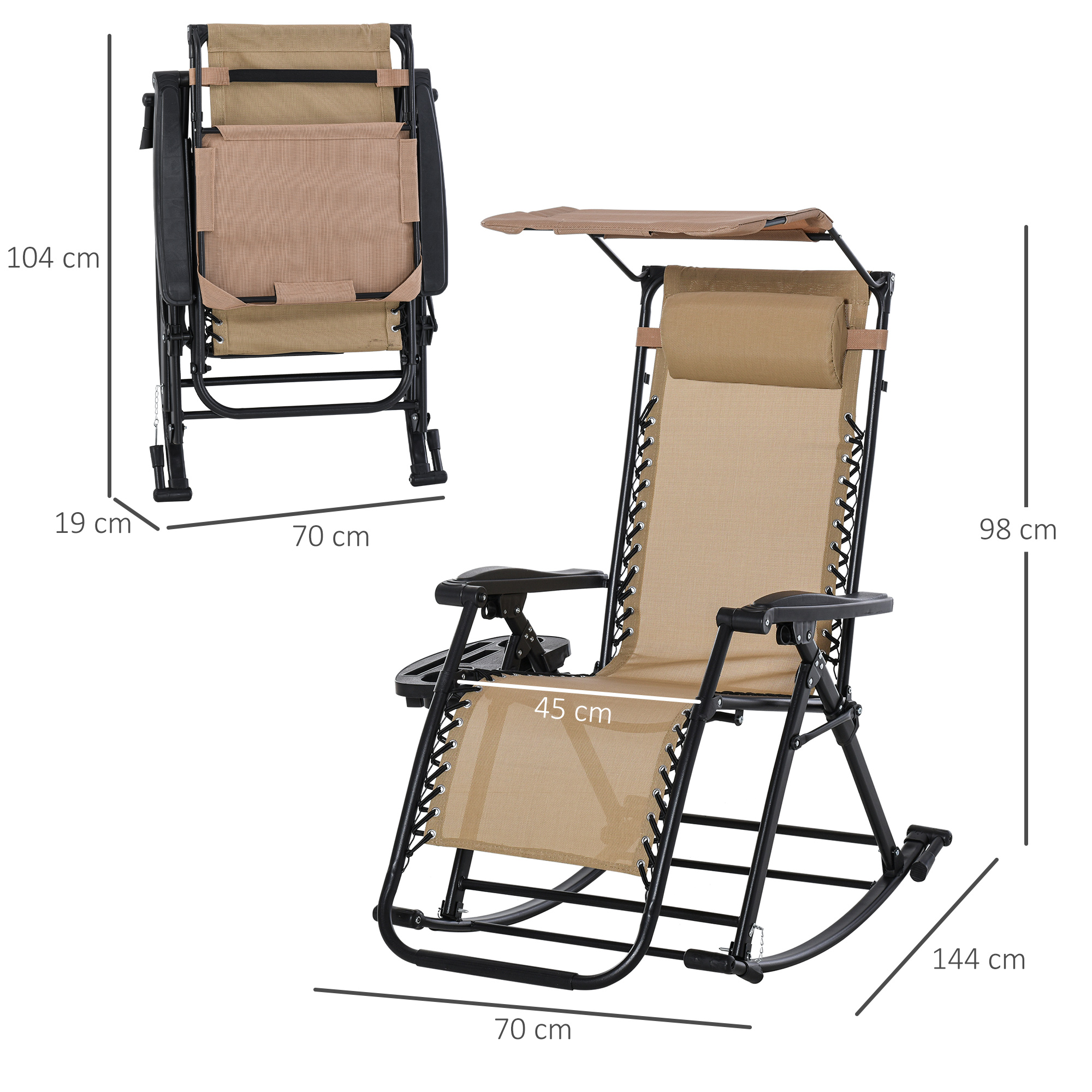 The garden rocking chairs for adults from are the perfect gateway to total relaxation in the sun. The powder-coated steel frame forms a tough structure, where the seat is attached to the base for a floating zero-gravity feel. The back freely adjusts between a 10°-35° angle so you can lie back to a position you like. The fabric seat and padded headrest make the garden rocker comfortable, finished with a handy side tray and top canopy to shield you safely.