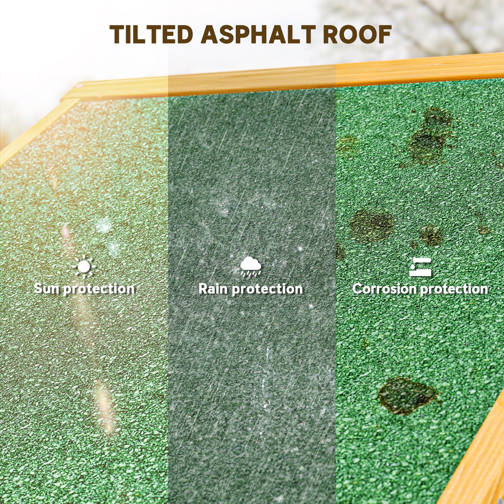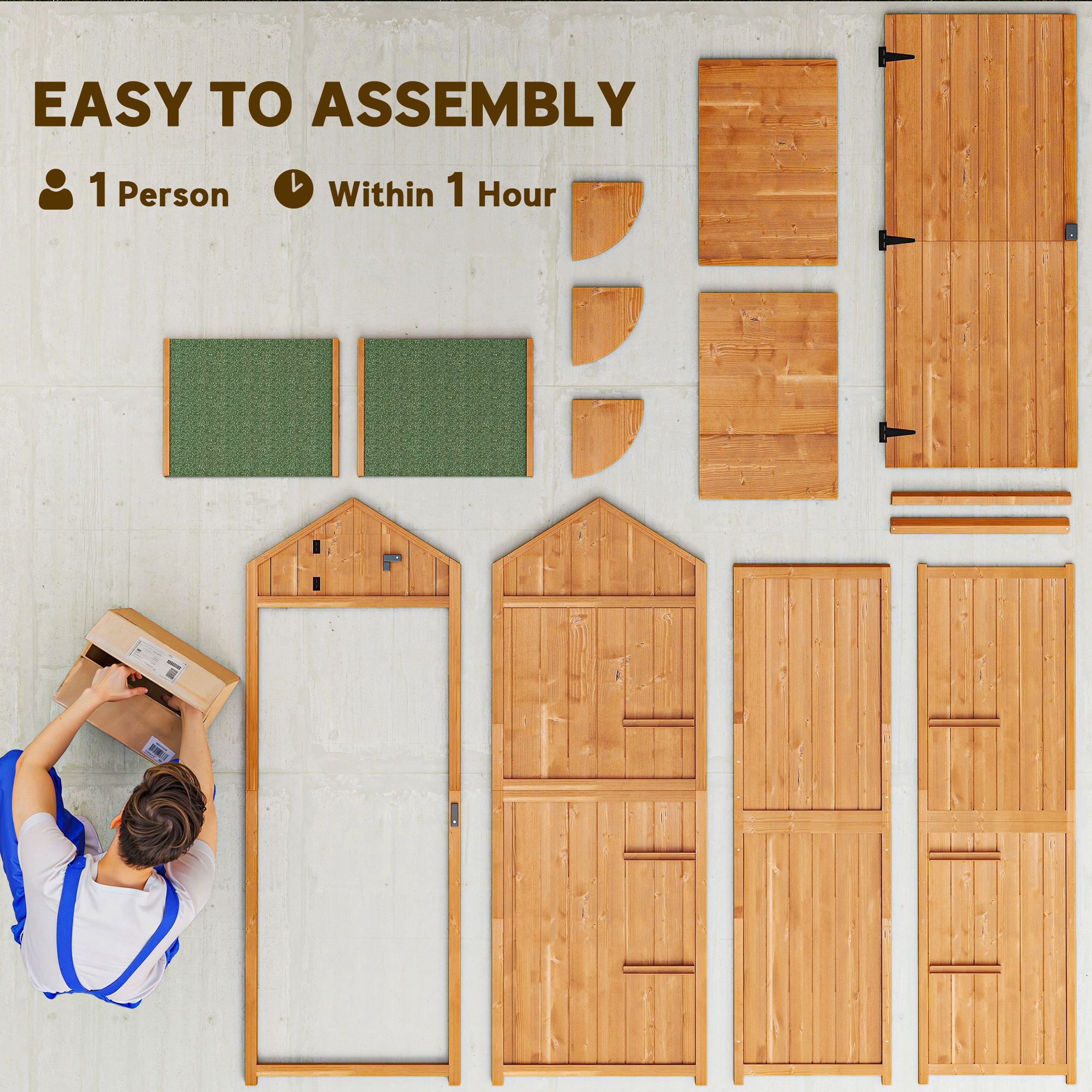 The backyard storage shed from is an ideal solution for organizing all your garden tools and equipment. You can place small items on 3 shelves and store bigger tools in the larger area. This vertical storage shed is made of durable pine wood and cedarwood for a sturdy and strong construction. The wooden surface covered with waterproof paint and the roof with asphalt help provide added protection outdoors. The tool cabinet is designed to be an elegant and practical addition to your garden.