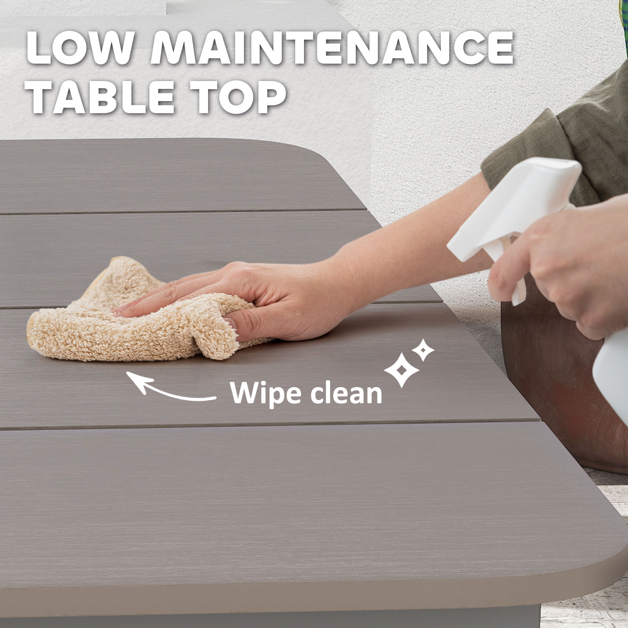 Gather round this garden dining table, designed to seat six comfortably. Featuring a robust metal frame with a sleek powder-coated finish and crafted from wood plastic composite, it's not only weather-resistant but also a breeze to clean. Its modern minimalist style effortlessly enhances any garden setting, making it your go-to for outdoor gatherings.
