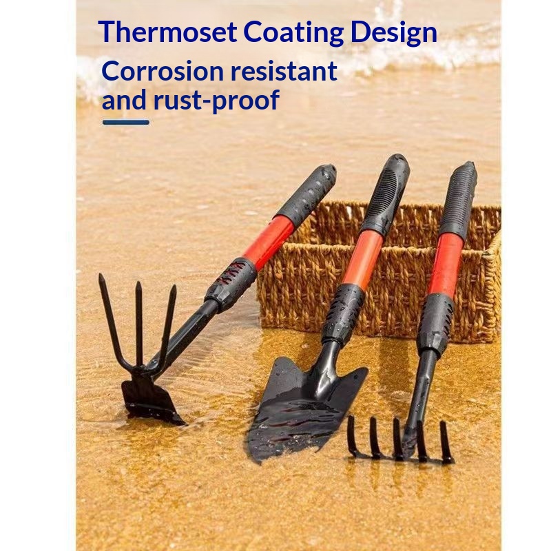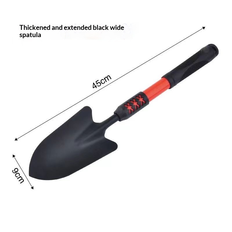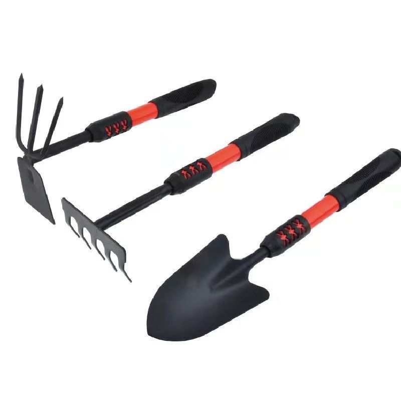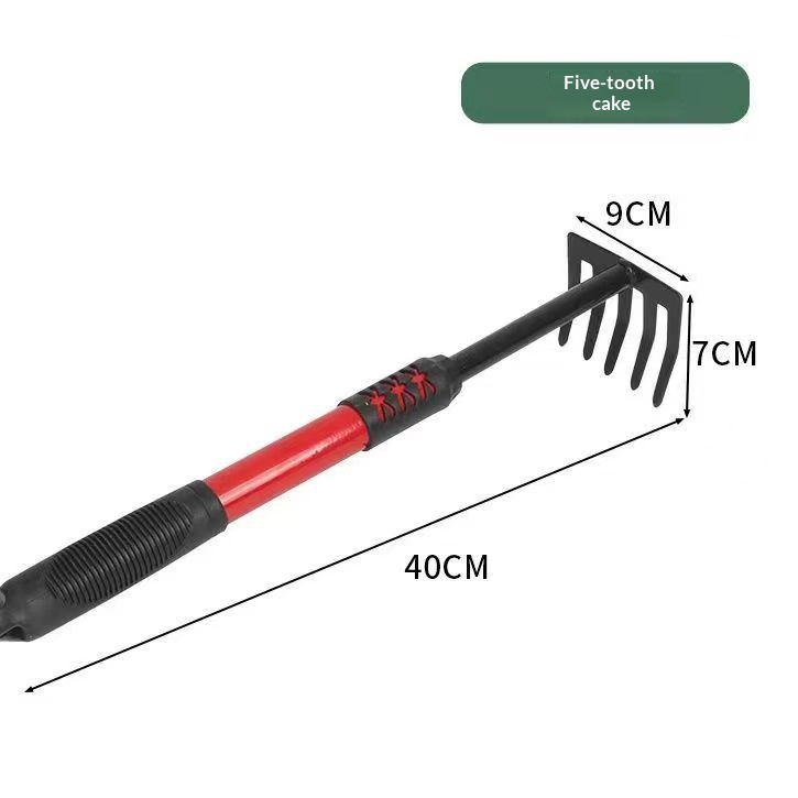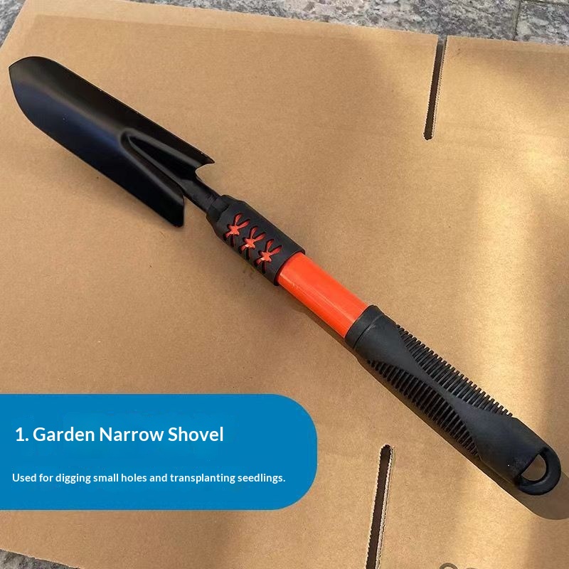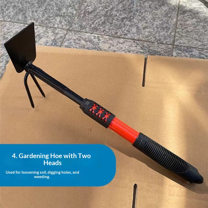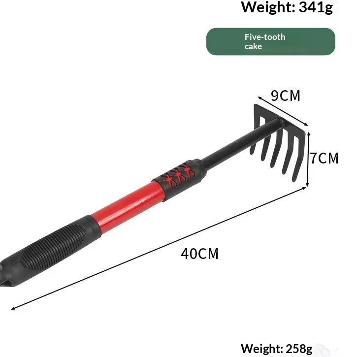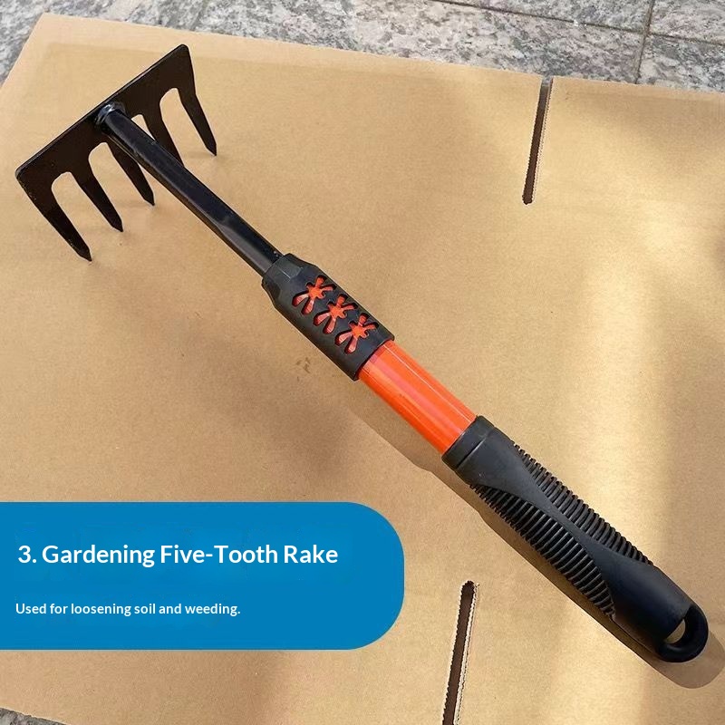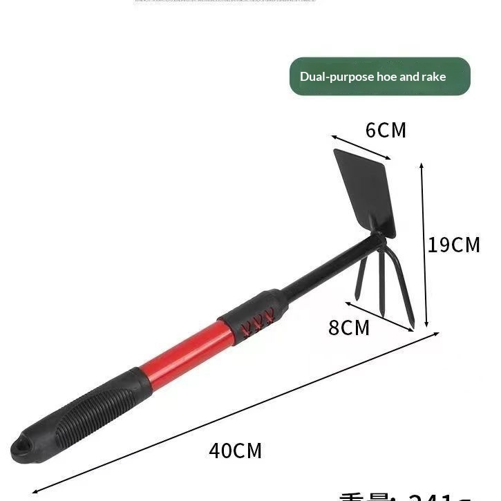 Specifications: Pointed Shovel [Length], Wide Shovel [Length], Toothed Rake [Length], Dual-Use Tool [Length], Four-Piece Set [Length]