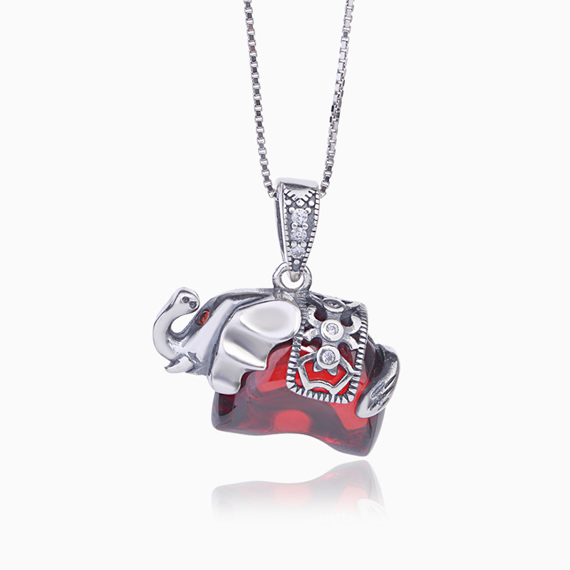 Garnet Elephant Pendant Lucky Animal Pendant