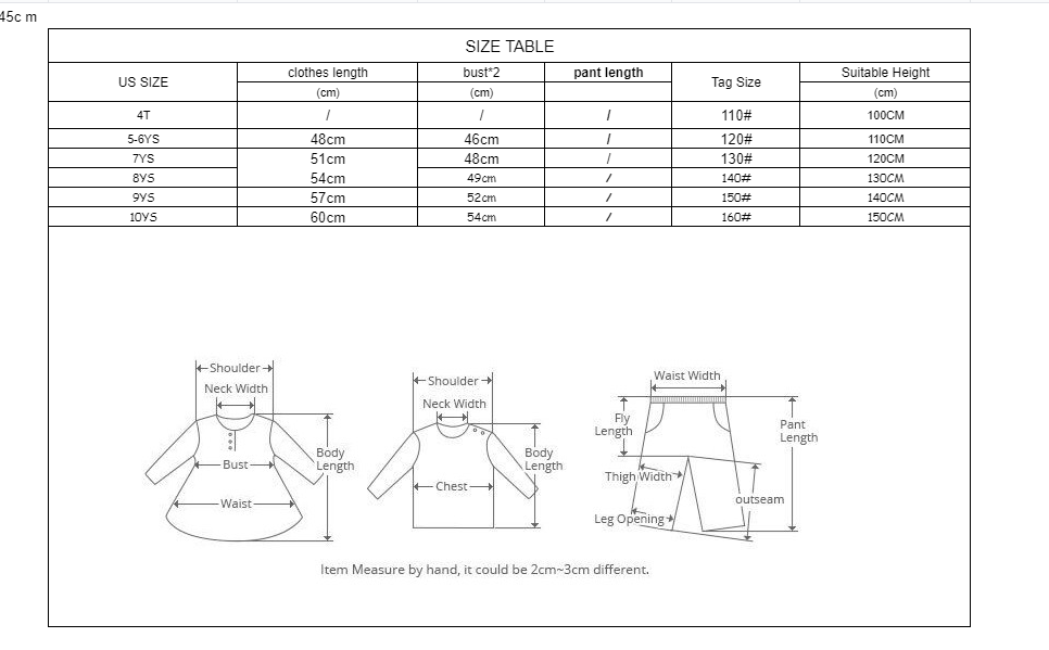 Size:110cm,120cm,130cm,140cm,150cm,160cm,170cm\