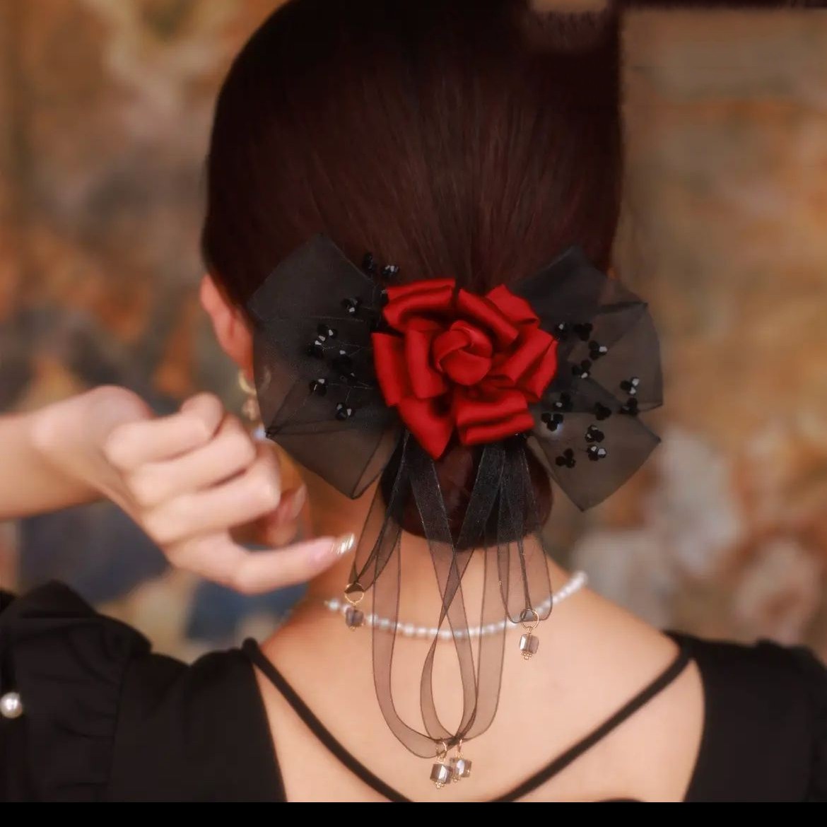 Product information :Material: alloy fabricCategory: hairpin: spring clipColors: green, red, blackPacking list:Grip *1