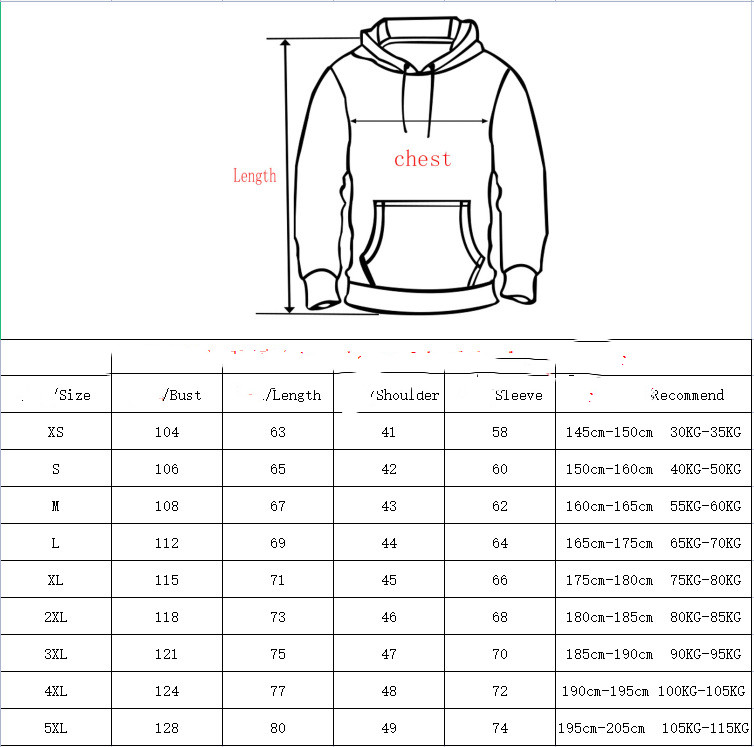 Size: XS,S,M,L,XL,2XL,3XL,4XL,5XL