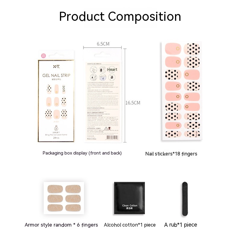 Packaging box * 1+Nail sticker * 1+Random nail style * 1 piece+Alcohol cotton * 1 piece+Nail rubbing * 1 piece