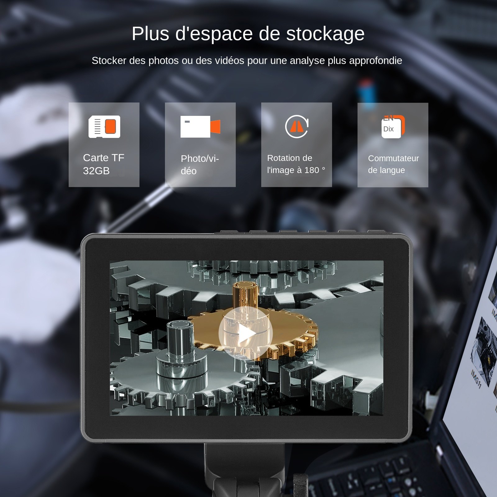 Kabellänge: 4,9 Fu_ / 1,5 m,Batteriekapazität: 4500 mAh,Gelenkwinkel: 0°- 180° Zweiwege,Brennweite: 1,2-3,2 Zoll / 3-8 cm,Digitalzoom: 1x, 2x, 4x, 6x, 8x,Schutzart: IP67,Bildschirmtyp: 5-Zoll-IPS-Bildschirm,Linsendurchmesser: 0,25 Zoll / 6,4 mm,Einstellbare LED-Leuchten: 8,Objektivauflösung: 1920 x 1080,Artikelmodellnummer: ZX2-D2,Bildschirmauflösung: 854 x 480,TF-Karte: 32 GB,Bilddrehung: 180° im Uhrzeigersinn