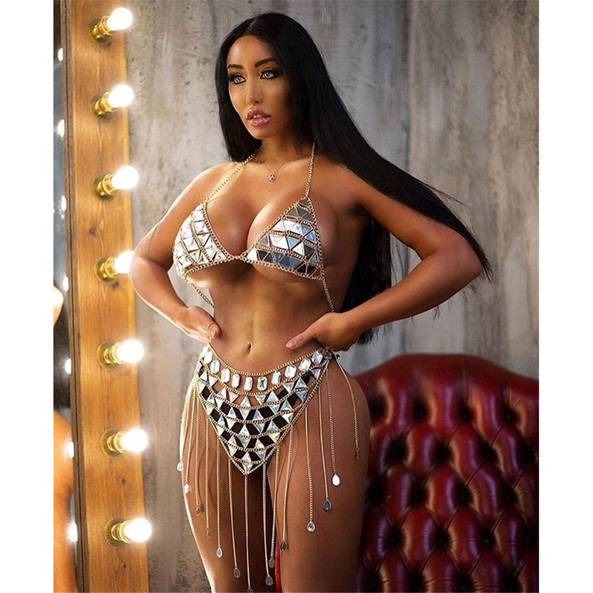 Style: StreetPattern: color matchingFabric: MetalColor: one-piece skirt, one-piece top
