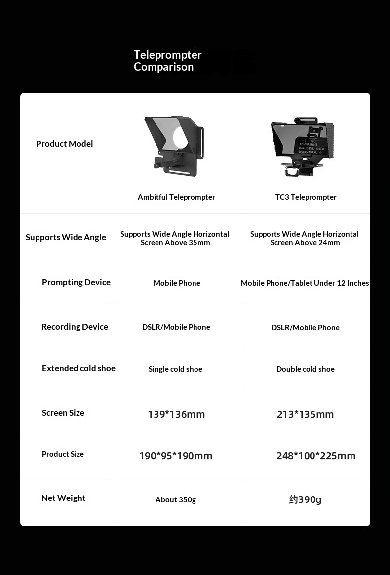 Color: T1 teleprompter + tripod, TC3 teleprompter + tripod